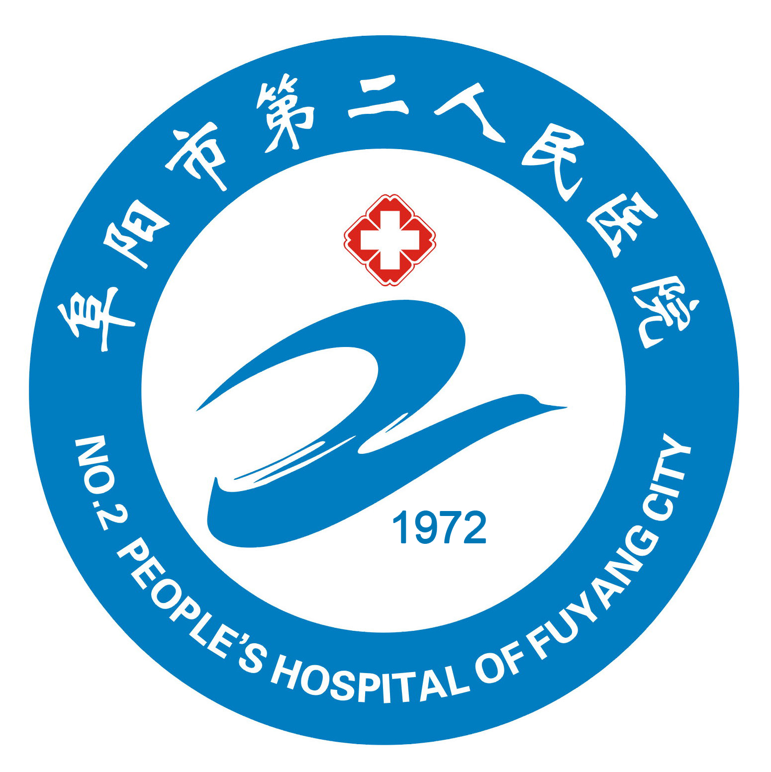 阜阳市第二人民医院院徽 (阳文) (阴文) 释义:阜阳市第二人民医院院徽以数字“2”和四心红边白十字组成,数字“2”形似展翅高飞的鹏鸟,象征着阜阳市第二人民医院各项事业持续协调发展、欣欣向荣的良好态势,展现出无穷活力与勃勃生机。鹏鸟色为科技蓝,象征着阜阳市第二人民医院坚持科技兴院的发展之路和精神内涵,红边白十字突出医疗行业的属性特征,与鹏鸟组成一奋进跨越的人形,象征着阜阳市第二人民医院以人为本、以病人为中心的服务理念和人才发展观,同时象征着阜阳市第二人民医院积极进取、开拓创新的精神风貌、昂扬斗志与时代英姿。图案整体简洁明了,主旨突出,充满了时代气息和人文精神,昭示着阜阳市第二人民医院广阔的发展空间和美好的明天。 |