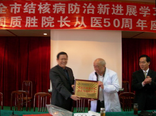 为热烈祝贺阜阳市二院德高望重的老专家、名誉院长周质胜先生从医50周年, 3月26日,在2008年世界防治结核病日宣传教育活动期间,阜阳市二院举办了周质胜院长从医50周年座谈会。 图为葛阳院长在周质胜专家从医50周年座谈会上发表重要讲话 阜阳市二院的肺结核等呼吸系统疾病诊疗技术之所以较为先进,得益于国内知名的呼吸学科专家、阜阳市呼吸学科的创始人、阜阳市二院的名誉院长、老专家、老前辈周质胜先生。今天,又适逢他老人家从医50周年纪念日,与会人员围绕着向周质胜老院长学习,不断提高肺结核等呼吸系统疾病的诊治水平举行了座谈会。 图为葛阳院长向周质胜专家颁发从医50周年纪念匾牌 周院长从医半个世纪以来,始终践行希波克拉底誓言,坚持勤奋学习,操守漫长的行医生涯,执著地追求着他的最大理想——“好好做医生,做一个好医生”,将毕生的精力奉献给医学事业。 50年来,周院长不怕吃苦,勤于实践,经常深入病房、门诊观察病人,反复验证,把收集到的资料加以综合,并和书本、文献结合起来思考运用和总结,积极开拓,共发表学术论文200多篇,获得《中华结核呼吸杂志》“金笔奖”,曾任大型工具书《内科理论与实践》的编委、安徽省呼吸病学分会副主任委员。他在阜阳市乃至我国医学领域的崇高威望和巨大贡献,让众人有目共睹,1983年、1986年、1987年连续三年,被评为全国卫生系统先进工作者;1989年被推选为全国劳动模范;1993年当选为第八届全国人大代表,享受国务院津贴。 周院长从医50年的历程,使人们懂得:一名“好医生”必须具备高尚的医德和高超的医术,并视患如亲,爱院如家。 阜阳市二院院长葛阳同志出席培训班开班仪式及周院长从医50周年座谈会,向周质胜院长从医50周年表示热烈的祝贺,并为他颁发了“悬壶济世五十载,医界美誉冠颍淮”纪念匾牌。同时,号召全院干部职工要向周院长学习,以周院长为榜样,树立“二院人”的形象,“有所为,有所不为”,为实现“强专科、大综合的一流医、教、研型综合性医院”宏伟目标而努力奋斗。 |