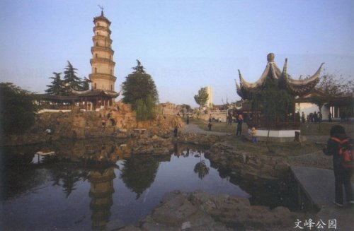 三元桥东,文峰塔南,有一座以田园神韵取胜的公园,这就是1989年建成的文峰公园(原名长春园)。此园三面临水,东边与纺织博物馆相连。占地近10公顷,除园畔流过的濠河外,园内与濠河相通的河面就有3.3公顷,可谓"水包园,园包水"。文峰公园以植物造园为主,借鉴传统的造园手法,仿山摹水再现自然山水之灵,依地形、山体之势,巧妙布局,显出幽远与开阔明朗相兼的景观。