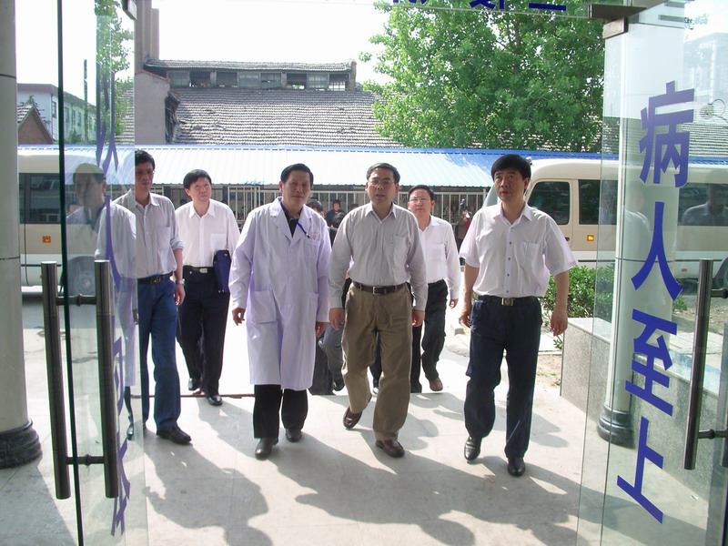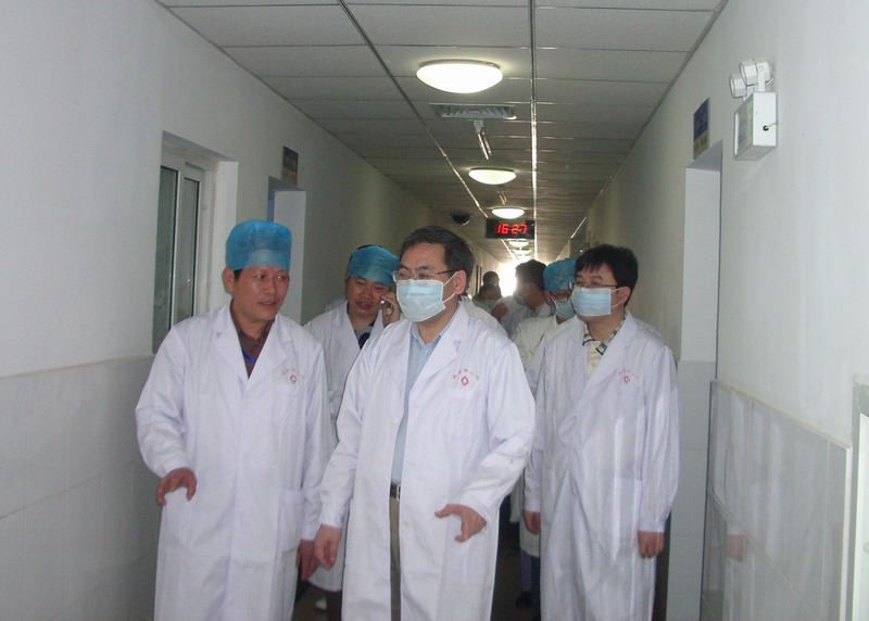 图为刘谦副部长在阜阳市委副书记、市长孙云飞及阜阳市二院院长葛阳等领导陪同下到该院感染二科检查指导工作