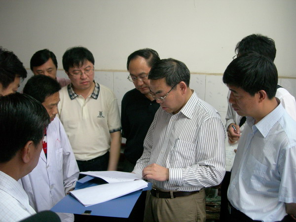 5月1日至2日,工作组在谢广祥、余华柱、高开焰、宋卫平、孙云飞、宋家伟、耿玲、杜长平、李子鹏等省、市领导的陪同下,先后来到太和县中医院、颍泉区宁老庄镇卫生院、宁老庄镇许庄村,阜阳市二院、阜阳市疾控中心、阜阳市奎星苑社区服务站、阜阳市中医院,实地查看医院救治患儿、农村基层清理环境卫生和落实包保责任制等情况。