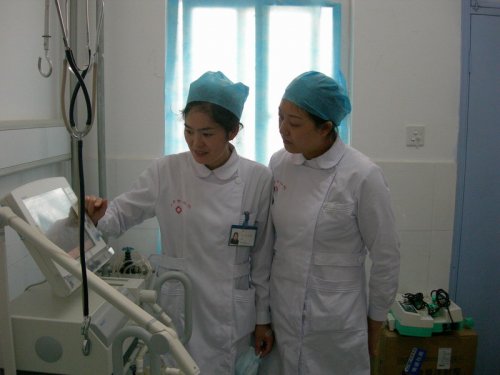 王黎与阜阳市二院PICU护士张祝娟亲密无间地在一起工作