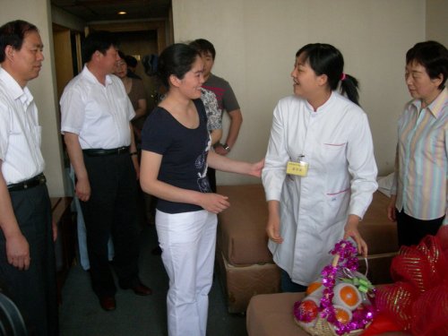 5月20日,市委常委、市委宣传部部长耿玲,副市长杜长平,市政协副主席、市政府秘书长李子鹏,在市卫生局局长曹化之、市二院院长葛阳的陪同下,看望慰问了5月9日前来支援我市手足口病救治工作的重庆医疗队四川省北川籍队员王黎护师,耿玲部长对她把家乡亲人的牵挂深深埋在心底,依然坚守在我市救治一线的爱岗敬业和舍己为人、无私援助精神给予了高度评价和诚挚谢意,并代表市几大班子和阜阳人民对王黎的家乡四川地震灾区受难的同胞,表示慰问和各种援助。