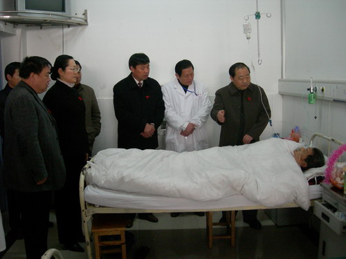 为落实民生工程,履行政府承诺,关心和帮助特困病人的生活和治疗。上午9时,市政协主席孟庆银、市政府副秘书长贾臻、市卫生局局长曹化之、市民政局局长司学龙等,在院长葛阳、党委书记刘新刚等陪同下,到感染科看望慰问了部分特困病人。孟主席代表市委、市政府对他们表示亲切地慰问,并鼓励他们树立起信心和勇气,积极配合治疗工作,沐浴各级政府和社会的关爱。孟主席同时对市卫生局和市二院近年来在积极处置全市突发公共卫生事件中,取得的突出成绩、做出的重大贡献,以及市二院近年来的建设和发展成就给予了充分肯定。孟主席要求阜阳市二院要再接再厉,加强科技兴院,人才强院,质量建院,进一步提升各项医疗服务水平,为全市人民的医疗保健事业做出更大的贡献。