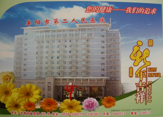 阜阳市二院新年贺卡,给全院职工和社会各届带来新春的祝福……
