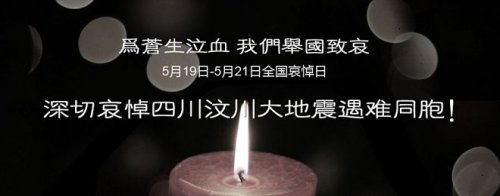 为表达全国各族人民对四川汶川大地震遇难同胞的深切哀悼,国务院决定, 2008年5月19日至21日为全国哀悼日。在此期间,全国和各驻外机构下半旗志哀,停止公共娱乐活动,外交部和我国驻外使领馆设立吊唁簿。5月19日14时28分起,全国人民默哀3分钟,届时汽车、火车、舰船鸣笛,防空警报鸣响。