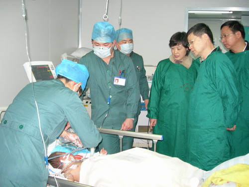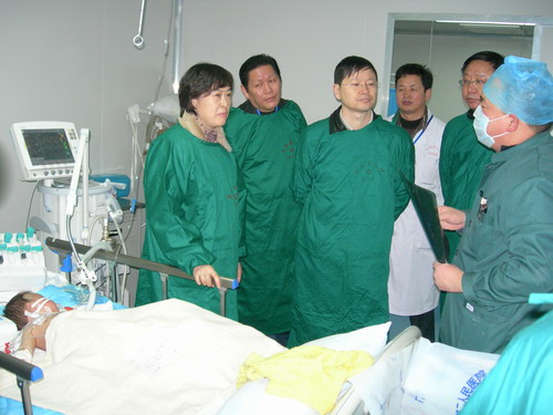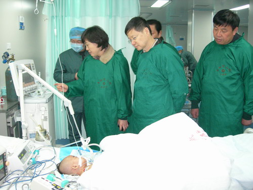 专家领导们先后来到阜阳市第二人民医院感染科看望了部分手足口病患儿,查看了儿童呼吸机等重症患儿抢救设备和儿童重症监护室;中国疾病预防控制中心副主任、博士生导师杨维中,北京儿童医院ICU主任钱素云教授等还深入到中心ICU室视察指导了危重症医学工作。