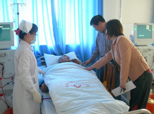 阜阳市二院对离休干部开展走访调研活动。 图为院长葛阳在与离休老干部杨贯中亲切交谈 图为院长葛阳在离休老干部杨贯中家很高兴地欣赏老人近年来所获得的各种学术荣誉,对杨老老有所为表示赞赏 为深入开展学习实践科学发展观活动,落实省、市老干部局“大走访”工作部署,喜迎建国60周年,5月12日,阜阳市二院院长葛阳率院人事科、办公室等有关科室负责人一行,逐一登门走访看望了医院在阜的离休干部。每见到一位离休老干部,葛院长总是关切地对他们的基本情况、健康状况、居住情况、目前主要困难及建议和要求等进行调查了解。在离休老干部杨贯中家,葛院长发现他家的橱房门走扇、锁不住,而是用绳子和棍固定着,用起来很不方便,葛院长立即安排工作人员进行维修。当听说离休干部吕登云在医院做血液透析治疗时,院长葛阳很快又来到医院看望老人,询问治疗情况,是否有困难等,离老干部们感激不已,他们纷纷表示:感谢党,感谢政府,感谢医院领导的关心。 |