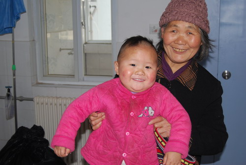 12月17日下午,刚刚痊愈的委委依偎在奶奶的怀里,高兴地拍着小手,露出可爱的笑容。半个月来,委委的重病让一家人陷入了绝境,是阜阳市二院医护人员和病友们合力完成的爱心接力让他们绝处逢生。