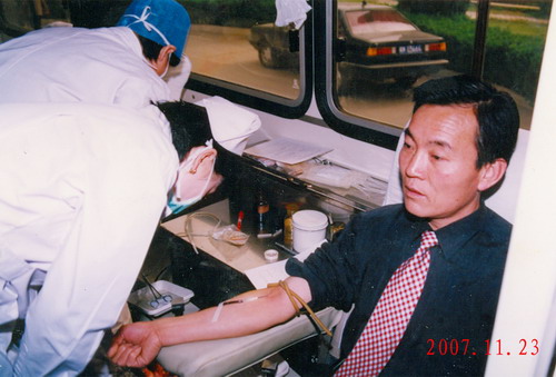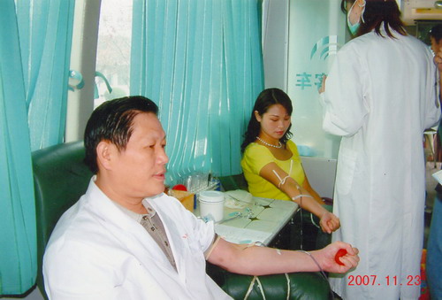 2007-11-26 为发扬救死扶伤,无私奉献的精神,展示白衣天使的良好形象,支持全市无偿献血工作,市二院在得知市中心血站血源紧张,部分血型告急后,于 11 月 23 日上午,组织全院干部职工,积极参加了无偿献血。 院长葛阳带头参加无偿献血 院党委委员、办公室主任段云鹏参加无偿献血 虽然天气有些寒冷,但在市中心血站近 20 平方米的采血车上,欢声笑语,热血沸腾。来自全院各科室、病区、门诊部的医务人员纷纷自告奋勇,卷起衣袖,上车排队,踊跃地参加无偿献血,热血流入贮血袋,笑容流露在医务人员的脸上。从上午 8 : 00 开始,直到中午 12 : 30 ,全院有 83 人共献血 28400ml ,因已到午餐时间,还有相当一部分医务人员没来得及献血。这些善行义举为阜阳市无偿献血工作做出了一定的贡献,同时也为该院争得了荣誉。(马怀业 / 文浦启伟 / 图) |