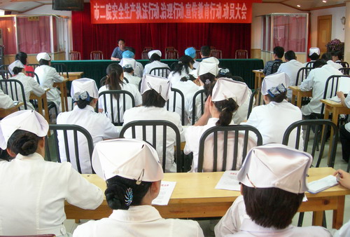 副院长马永业作了动员报告。他指出:安全生产,重于泰山,要以贯彻落实科学发展观的高度,坚持以人为本,安全发展和“安全第一、预防为主、综合治理”的方针,紧紧围绕安全生产月和“安全生产年”的总体部署和要求,面向基层、面向职工,进一步宣传贯彻党和国家安全生产的方针、政策,普及安全生产法律法规和安全知识,强化安全生产责任制,提高全员的安全意识,推动我院各项事业安全发展。