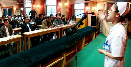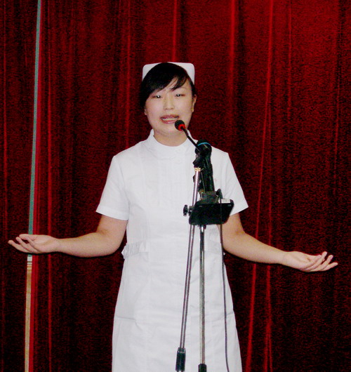 体检中心 王世勤《甘于平凡,拒绝平庸》荣获优秀奖 门诊部 韩燕 《皎洁玉兰 天使心,齐心协力创三甲》荣获优秀奖 心血管神经内科 冯利娟 《创建三甲,我们该怎么做》荣获优秀奖 肝病一科 韩庆玲 《三甲医院,距离我们有多远》荣获优秀奖 评分工作人员 美丽的天使(观众) 市卫生局副局长吴荣涛、市总工会财务部部长杨仲林应邀参加演讲会并分别讲话 市电视台《直播阜阳》主持人李度在对演讲作点评(穆克亮 浦启伟 马怀业/摄)