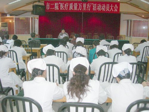 阜阳市二院深入开展“医疗质量万里行”活动 8月7日,阜阳市第二人民医院召开了“医疗质量万里行”活动动员大会。