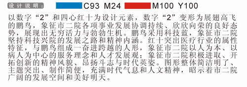 为树立良好的社会形象, 2009年6月6日—8月6日,阜阳市第二人民医院面向社会开展了公开征集院徽活动,许多关心、支持该院发展与建设和热爱医疗卫生事业的社会各界人士纷纷投稿,共征得作品数十篇。这些作品各有一定的艺术造型,有不少作品简洁明快,构思新颖、寓意深刻,具有很强的美感和视觉冲击效果,彰显了该院以人为本的理念和员工团结拼搏、与时俱进的时代精神风貌,有的还显现了该院的集体力量与责任。现将部分作品予以展示,以感谢所有参与设计和关心、支持阜阳市第二人民医院建设与发展的同志们——     [荣获“阜阳市第二人民医院院徽征集突出贡献奖”作品(采用)]