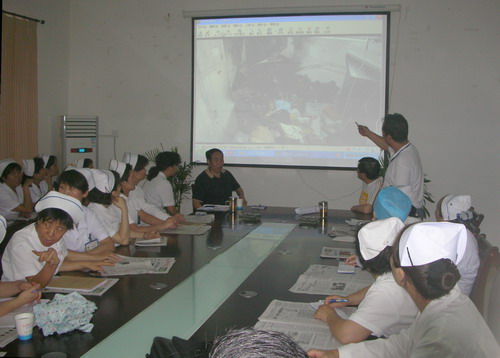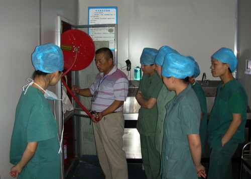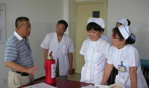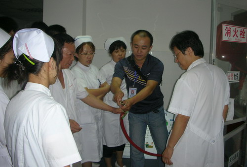 阜阳市二院开展全员消防培训 为提高消防安全意识,增进全员对消防知识的了解, 图为院保卫科科长邹鸣在向护理人员进行消防培训 图为院保卫科副科长刘中兰在向干部病房科医护人员讲解消防知识 图为院保卫科副科长刘中兰在向手术室医务人员演示室内消防栓的使方法 培训采取逐科室进行、逐人过关的办法,由院保卫科有关负责人向各科室医务人员讲解新《消防法》的主要内容,发生火灾时报警,灭火扑救、自救、疏散法,以及消防设施ABC灭火器和室内消防栓的使用方法等。通过培训,使全院医务人员进一步熟悉了消防设施的操作方法,增进了对消防知识的了解,提高了消防安全意识。 图为院保卫科消防技术人员在干部病房科指导医护人员使用室内消防栓 |