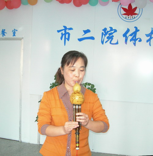9月29日,健康体检中心举办了国庆联欢会。 图为体检中心医务人员大联欢合影 爱国歌曲独唱 舞蹈表演 葫芦丝独奏 体检中心主任杨凌赋诗祝庆 副院长冉献贵参加联欢会,并讲笑话助兴