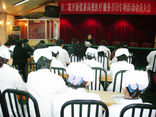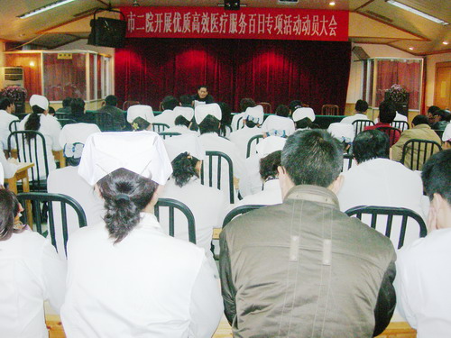 为不断提高服务质量,按照市卫生局安排,从2009年12月至2010年4月,阜阳市第二人民医院将开展优质高效医疗服务百日专项活动。