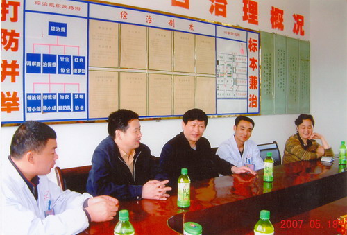 阜阳市二院院长葛阳、医务科长孟晓林与有关专家到对口支援的江店卫生院考察指导工作
