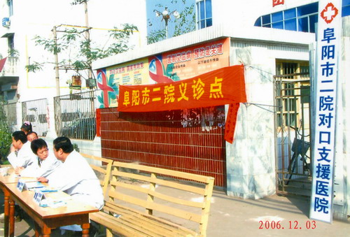 2006年12月3日,阜阳市二院副院长马永业与阜阳县三塔镇政府领导为对口支援医院三塔镇卫生院挂牌 阜阳市二院专家在三塔镇卫生院开展义诊活动