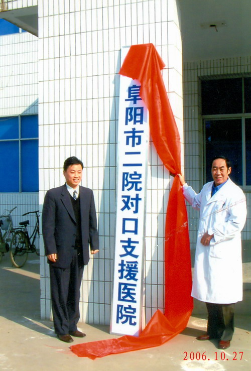 2006年12月3日,阜阳市二院副院长马永业与阜阳县三塔镇政府领导为对口支援医院三塔镇卫生院挂牌
