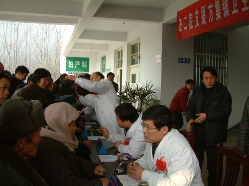 2008年1月6日,阜阳市二院与阜南县方集镇卫生院结为对口支援医院。阜阳市二院副院长马永业、党委委员兼办公室主任段云鹏、医务科长孟晓林及有关专家,在阜南县卫生局党组书记、局长骆桂新,局党组成员、县疾病预防控制中心主任刘振东及方集镇镇委书记田世海、镇长韩杰等出席了挂牌仪式。 挂牌仪式现场 阜阳市二院将定期派出各相关科专家到该镇卫生院开展坐诊、手术示教、专题讲座,将先进的医疗技术和科研成果传授给该镇卫生院,对他们进行技术扶持,不断提高他们的业务水平,促进规范化建设,造福洪洼人民。同时也扩大了阜阳市二院的知名度,增强了辐射力和带动力。 阜阳市二院副院长与阜南县卫生局局长骆桂新共同揭牌 阜阳市二院将定期派出各相关科专家到该镇卫生院开展坐诊、手术示教、专题讲座,将先进的医疗技术和科研成果传授给该镇卫生院,对他们进行技术扶持,不断提高他们的业务水平,促进规范化建设,造福洪洼人民。同时也扩大了阜阳市二院的知名度,增强了辐射力和带动力。挂牌当天,阜阳市二院专家在阜南县方集镇卫生院举行了大型义诊活动。 开展大型义诊活动 |
