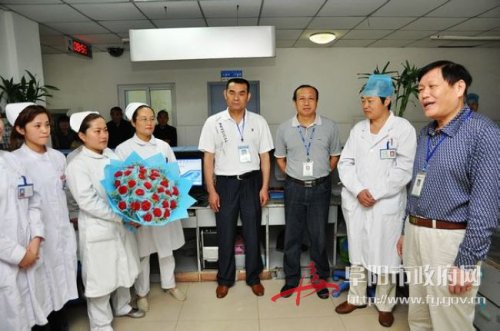 5.12国际护士节是全世界护士的共同节日,当日上午刚一上班,阜阳市二院领导班子成员就带着鲜花、水果,深入临床科室,看望慰问节日仍然辛勤工作的护理人员,为“白衣天使”们送去医院的关怀和节日的祝福,并对优质护理服务工作提出希望和要求。葛院长说:“希望你们今后进一步把护理工作做得更好,把优质护理服务在全院推开,不愧于“白衣天使”称号。 当日,医院还向全院护理姐妹们编发了慰问短信,使全院护士们受到鼓舞。(马怀业/文 王彪/摄)