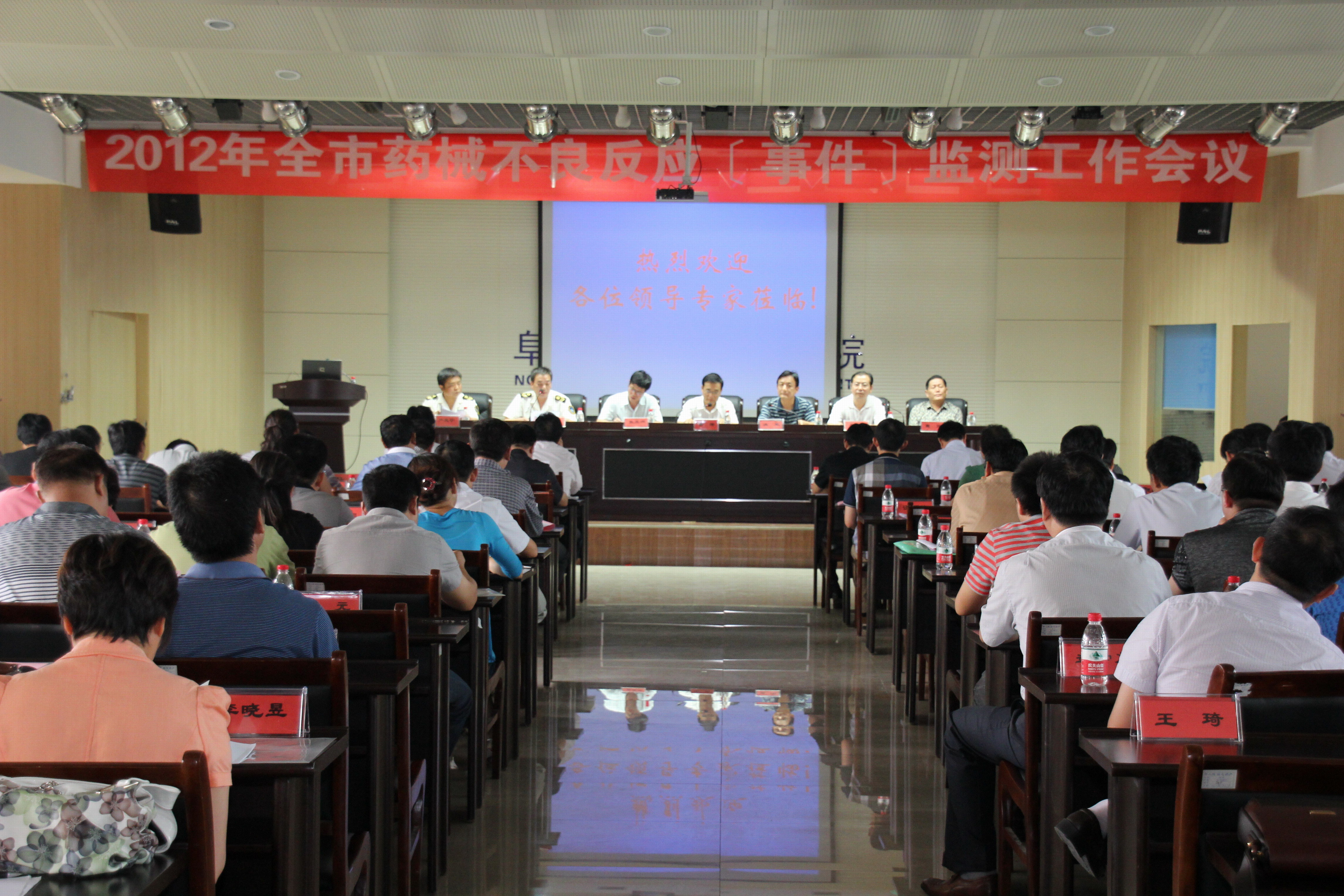 8 月 23 日 下午,全市药品不良反应暨医疗器械不良事件监测工作会议在阜阳市第二人民医院召开。省药品不良反应监测中心副主任洪军, 市食品药品监督管理局局长黄琦、副局长王鹤松、吴军;市卫生局副局长张亚洲;市二院院长葛阳等领导出席会议。市食品药品监督管理药品安全监管科、医疗器械监管科主要负责人;市食品药品医疗器械不良反应(事件)监测中心全体成员;市卫生局医政科、卫生监督局主要负责人;各县(市)食品药品监管局局长、分管局长、负责药械不良事件的科室负责人;三区卫生(食品药品监管)局局长、分管局长、监督所所长;各县市分管局长;以及全市二甲以上医院及市级监测网络成员单位院长、分管药剂和器械的院长、医务科、药剂科、设备科主要负责人参加了会议。