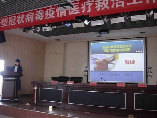 市二院感染办主任周晓平对《新型冠状病毒医院感染预防与控制技术指南》进行培训