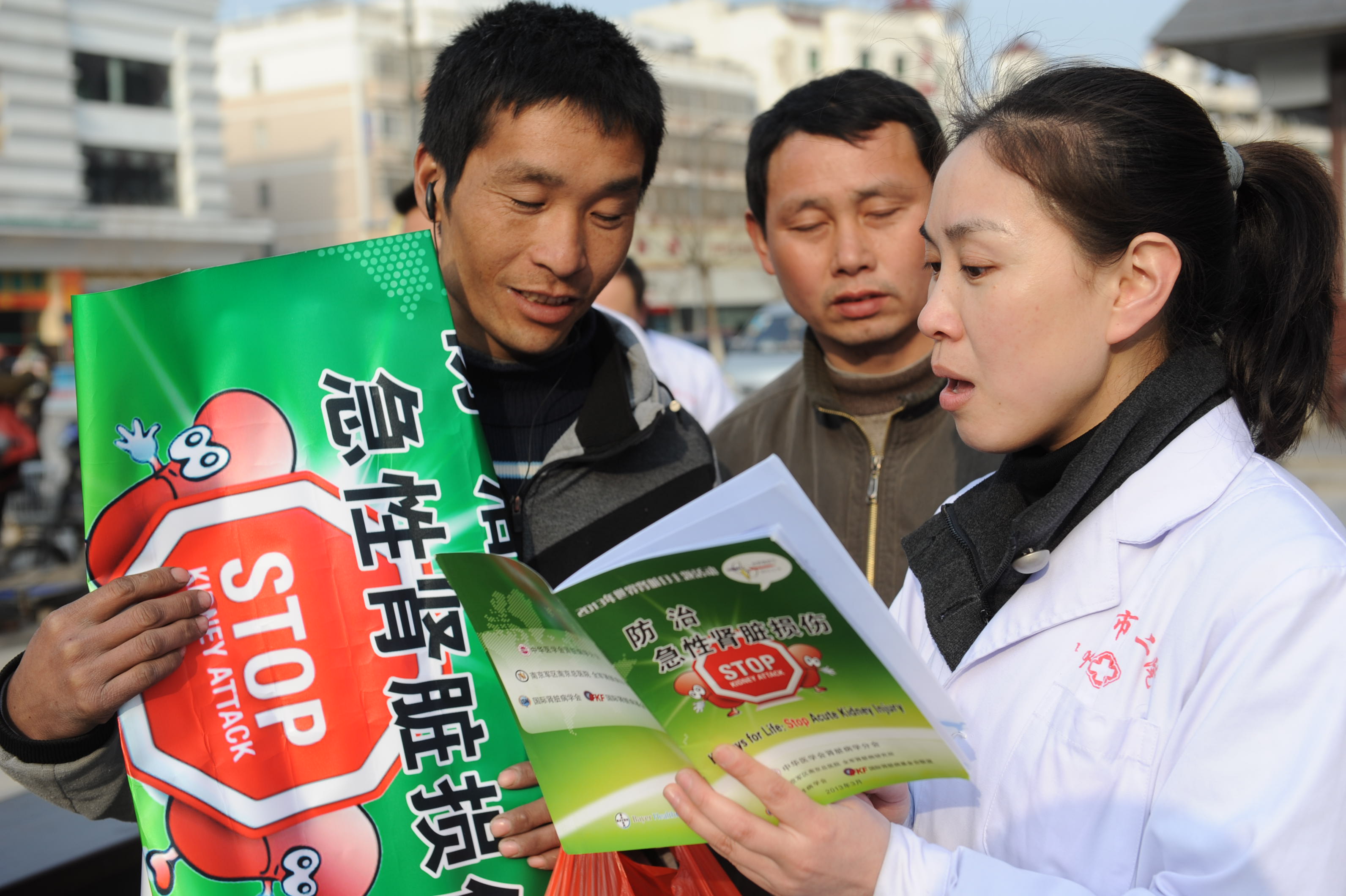 3 月 13 日 ,在第八个世界肾脏日来临之际,市第二人民医院的医务工作人员走上街头开展义诊活动,向群众宣传肾病防治知识。