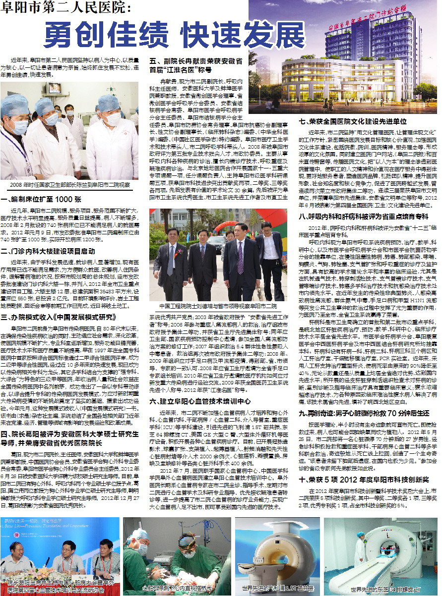 安徽城市广播电视报阜阳城市周报》 2013年6月8日刊文盛赞阜阳市二院勇创佳绩,快速发展。全文如下: