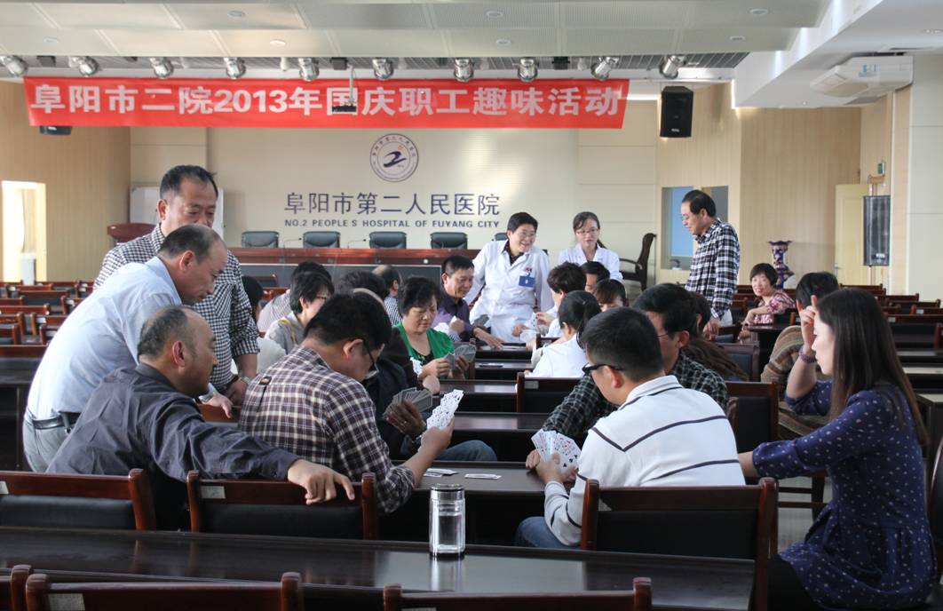 为庆祝国庆节,丰富职工的文体活动,加强医院文化建设,增强全院职工的凝聚力和团队精神, 9 月 29 日,阜阳市二院举办了国庆节职工趣味活动。