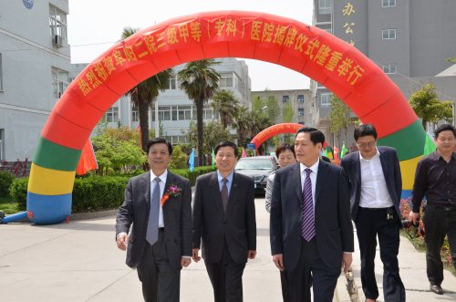 中国工程院院士刘德培(左二)与时任省卫生厅厅长高开焰等领导出席阜阳市二院三甲医院揭牌仪式