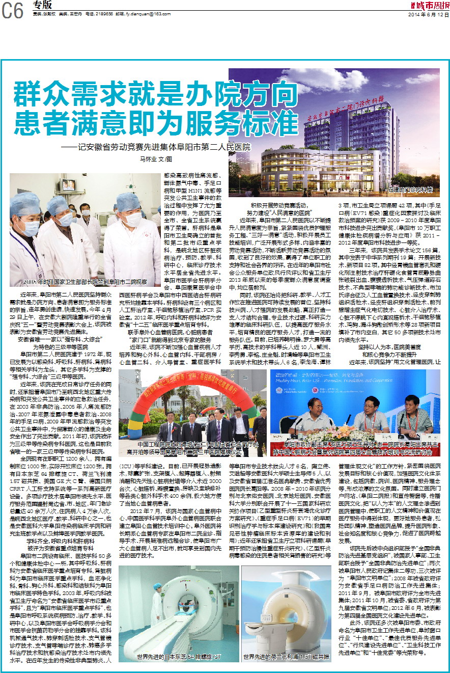 ——记安徽省劳动竞赛先进集体阜阳市第二人民医院