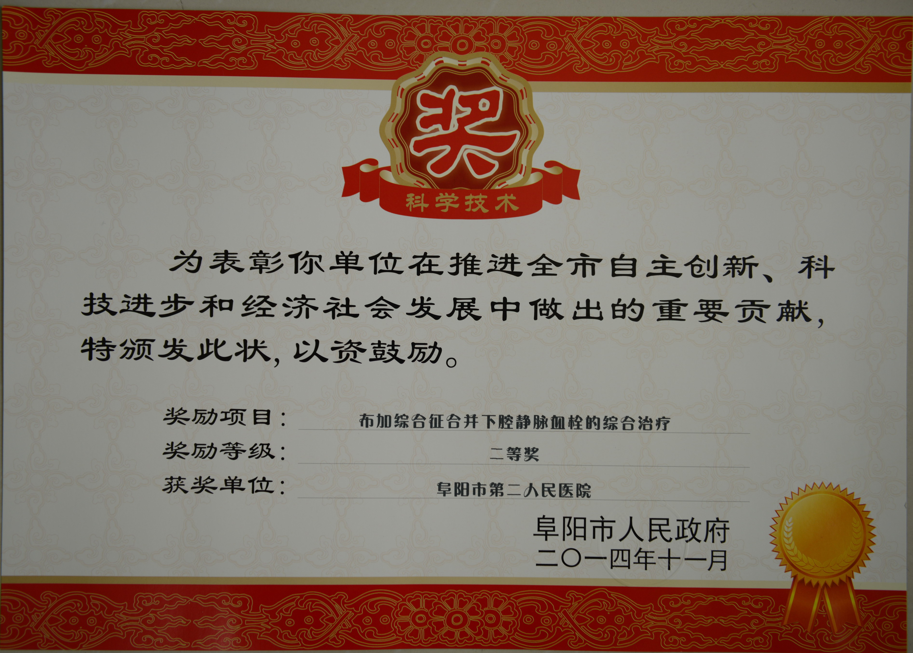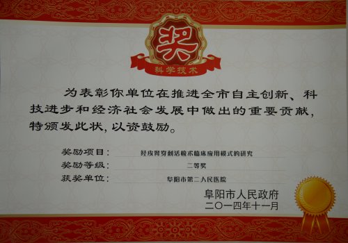 | 阜阳市第二人民医院获四项2014年度市级科技进步奖 | ||||