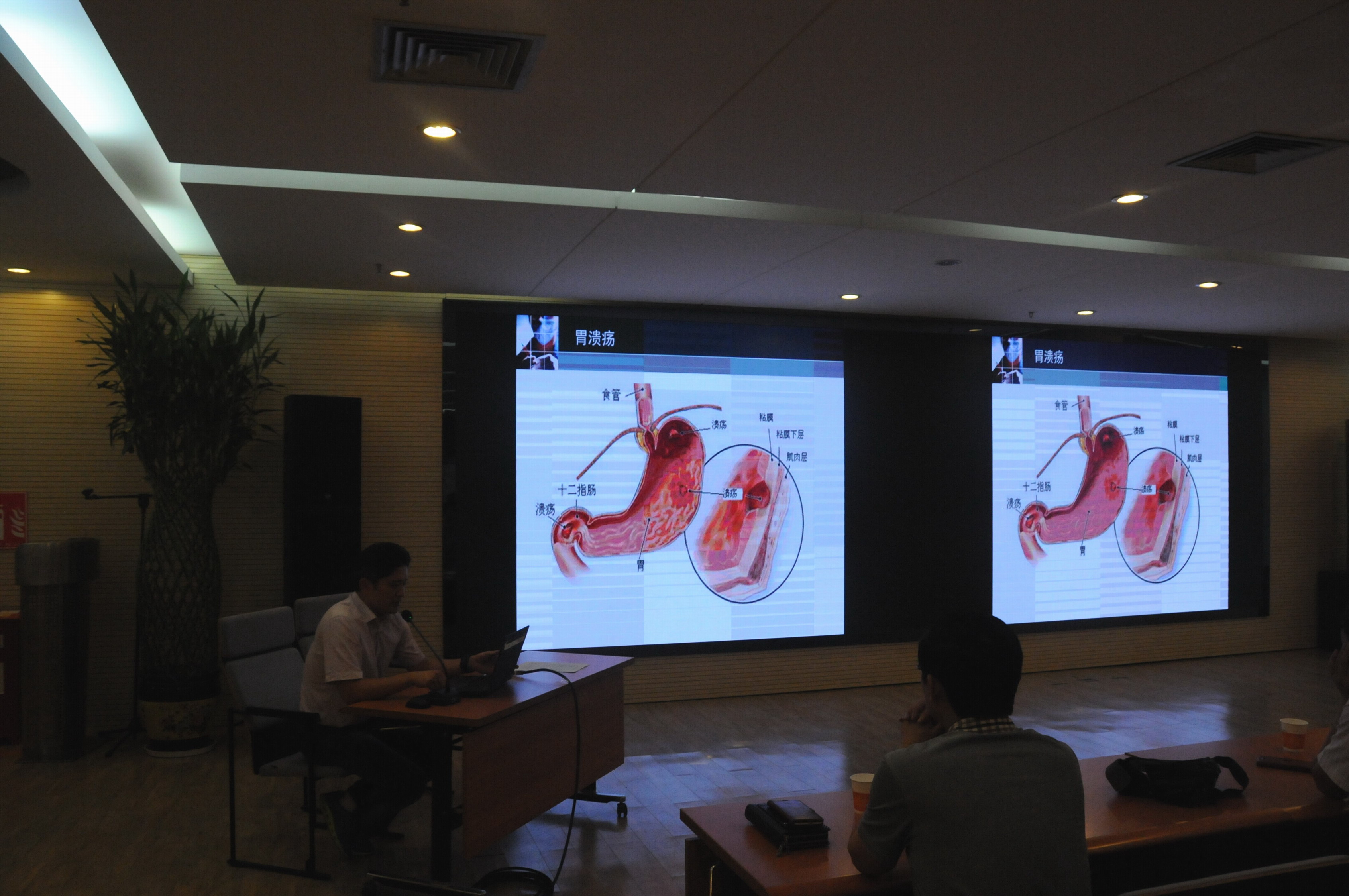 在阜阳华润电力有限公司大会议室内,阜阳市第二人民医院心血管内科主任、副主任医师王立新副教授作了《高血压病的防治》健康知识讲座,消化内科副主任、主治医师马超举行了《幽门螺旋杆菌的防治》健康知识讲座,肝病二科主任、阜阳市第五批专业技术拔尖人才、阜阳市肝病学科带头人、安徽医科大学硕士生导师谭林教授作了《酒精肝的防治》讲座,副院长、阜阳市第六批专业技术拔尖人才、阜阳市呼吸学科带头人、呼吸内科专业主任医师、安徽医科大学硕士生导师韩明锋教授做了《健康生活远离癌症》健康知识讲座。