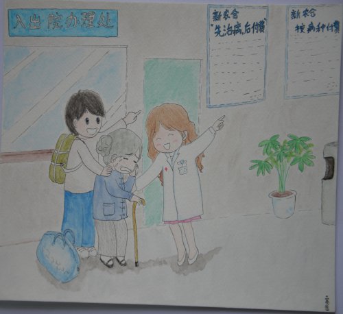 作品注释:在阜阳市第二人民医院尊老爱幼、关爱患者,助人为乐的风尚蔚然成风,医院还积极落实国家医改政策,推行新农合病先治病、后付费,以及按病种付费等一系列便民利民诊疗措施,让群众少花钱,看好病,充分享受医改“红利”。
