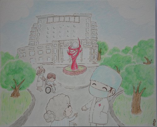 作品注释:在阜阳市第二人民医院每位医务人员都是导诊者,全院医务人员对患者实行首问负责制,对患者热情服务、优质服务,医患关系和谐。
