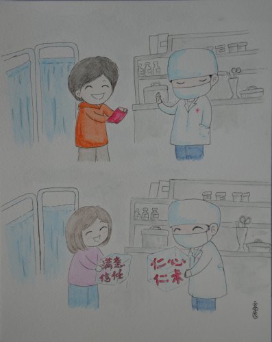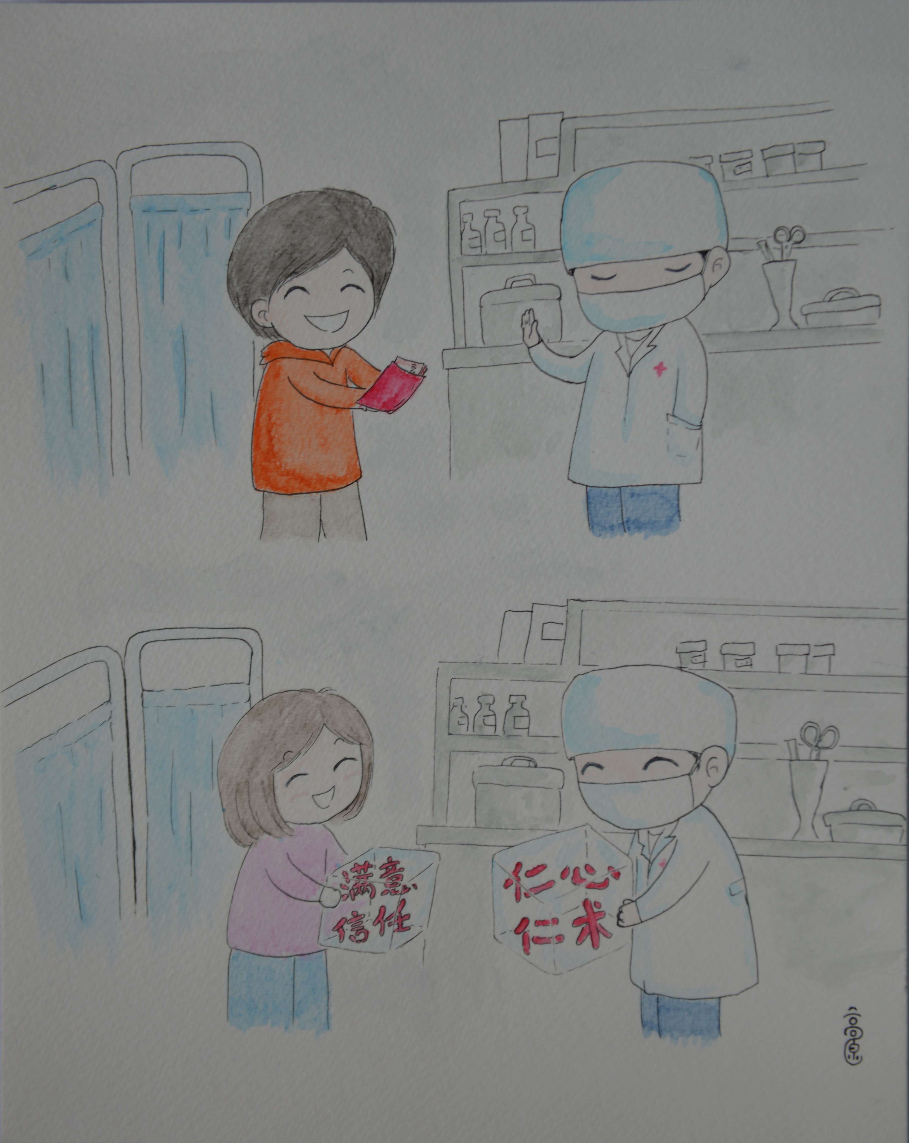 作品注释:仁心、仁术是阜阳市第二人民医院员工的道德规范,是医院文化的组成部分和重要内容,员工在这一行业道德规范的指导下,给广大患者带来满意的服务,以及和谐信任的医患关系。