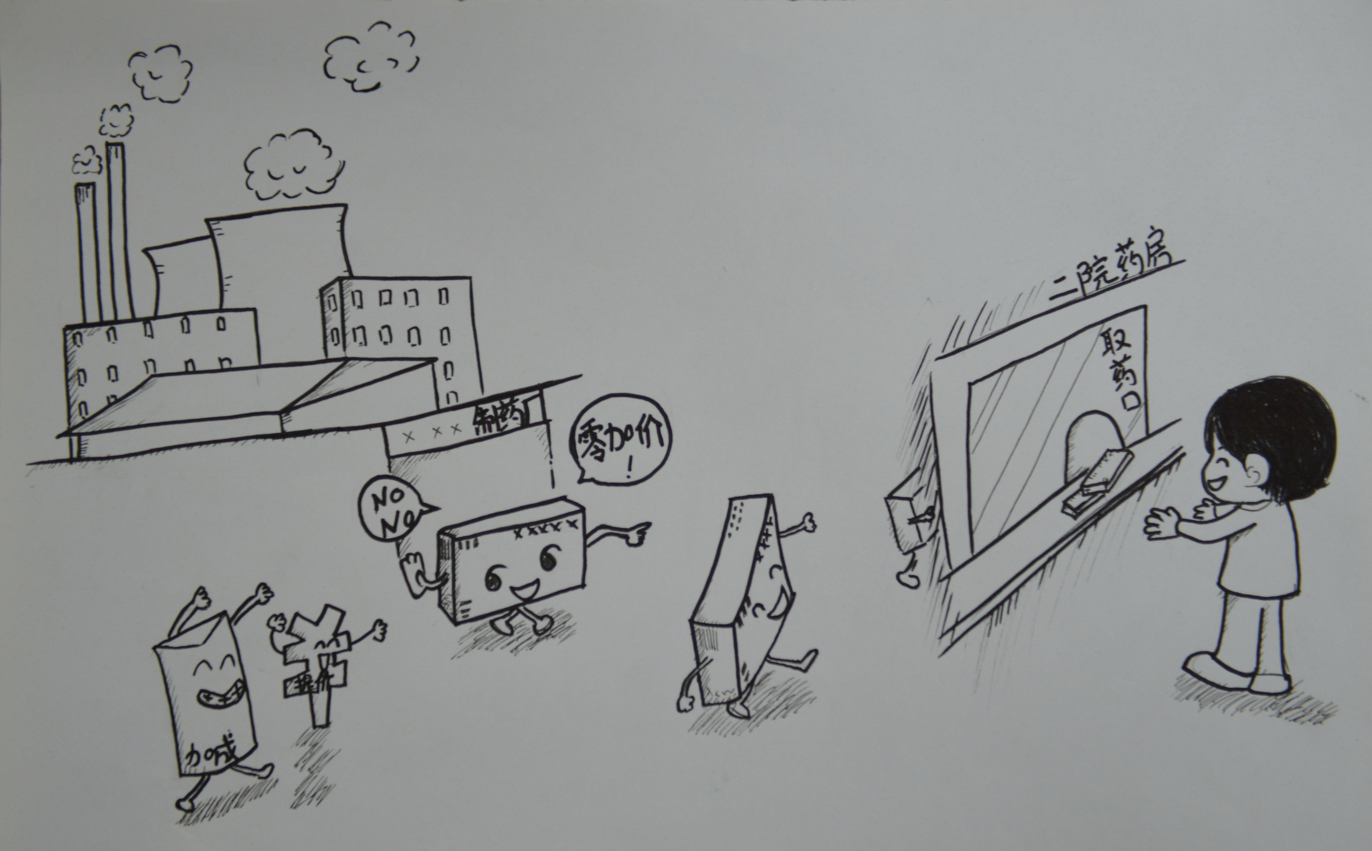 作品注释:2015年起,公立医院实施药品零加价,拒绝加成,让百姓在公立医院购买到的药品更实惠,价格更低。