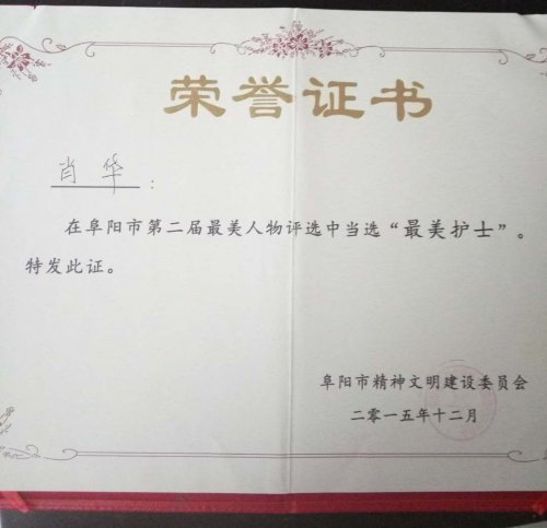 | 为生命增添绿色的护士——记市二院2015年阜阳市“最美护士”肖华 | ||||
