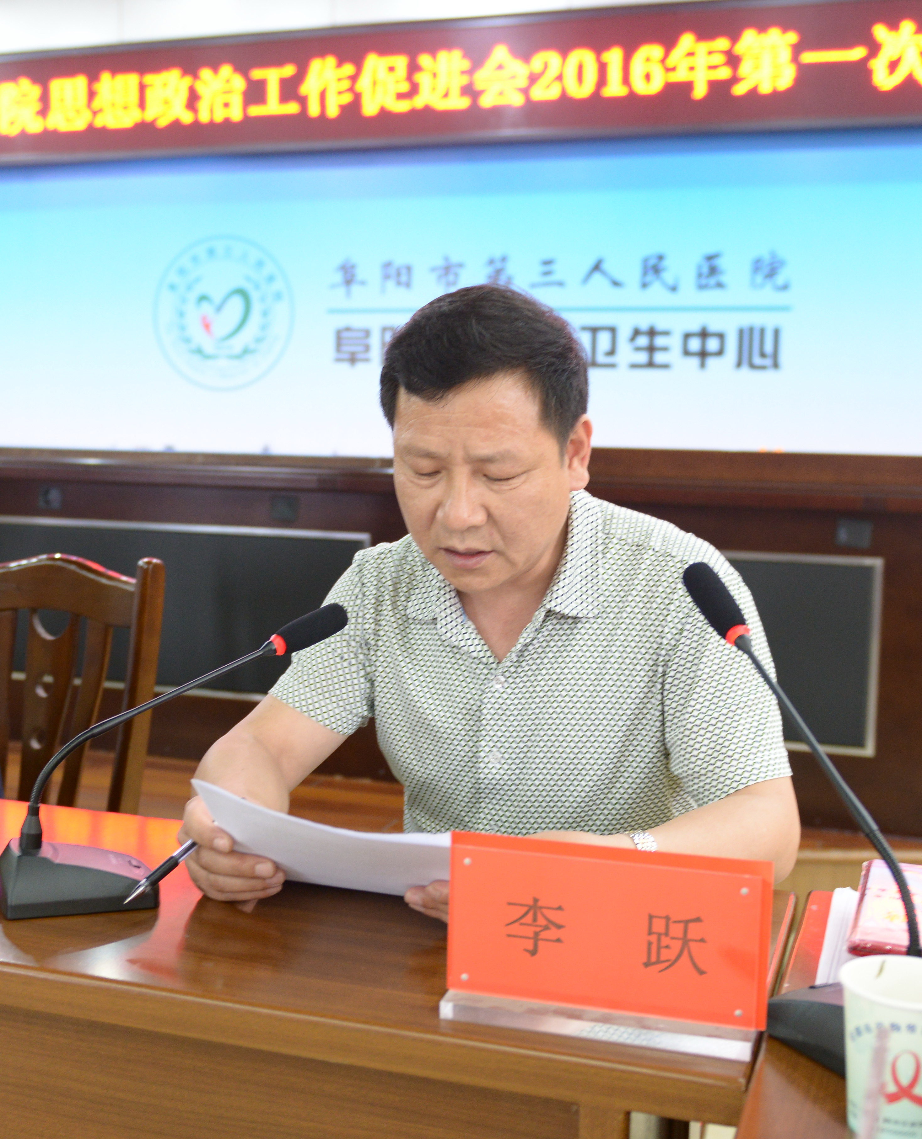 5月18日,阜阳市医院思想政治工作促进会2016年第一次会长扩大会议(常务理事会)在市第三人民医院召开,会议由阜阳市医院思想政治工作促进会主办,市第三人民医院承办。阜阳市医院思想政治工作促进会名誉会长、市卫生计生委副书记、副主任漆德安,会长、市二院党委书记、安医大硕士生导师陶立伟,市人民医院党委副书记、纪委书记刘国权,市三院党委书记、院长汪炳琳,市第四人民医院党委书记王贺峰,市中医院院长、党总支书记宁南义,市第五人民医院党委书记、院长程华磊,市肿瘤医院党委书记、院长陈志军,阜南县人民医院党委书记、院长陈雷,临泉县人民医院党委书记韦伟,中国中铁阜阳中心医院党委书记唐勤辉等副会长,以及秘书长、副秘书长、常务理事计30人出席会议,会议由会长陶立伟主持。 会议现场 陶立伟教授主持会议 会上,学会秘书长、市二院医疗体制改革办公室主任、事业拓展办公室主任兼院办公室副主任马怀业简要通报了阜阳市医院思想政治工作促进会成立以来,常务理事会秘书处围绕学会职能所开展的主要工作,2015年元月8日和2016年4月18日,秘书处分别组织召开了两次秘书长扩大会议,基本完成了学会注册的相关手续,并根据会员们的建议与要求,以及其他学会的做法,制作了会员代表证书、理事单位铜牌、继教证书。同时,开展了会徽征集评选活动,建立了学会网站、QQ群和微信平台,并拟办《工作简讯》,为各理事及会员单位搭建了日常交流、沟通的平台。学会还成功申报了2016年市级医院管理类继续医学教育——人文医学管理培训项目。 秘书长、市二院医疗体制改革办公室主任、事业拓展办公室主任兼院办公室副主任马怀业通报学会工作 会上,常务理事、市卫生计生委机关党委专职副书记李跃传达学习《国家卫生和计划生育委员会党组关于卫生计生系统加强和改进思想政治工作的指导意见》。会长陶立伟教授提出了2016年度学会工作思路和要求,并由刘国权副会长传达了《阜阳市医院思想政治工作促进会2016年工作要点》,王贺峰副会长传达了《关于开展阜阳市医院思想政治工作促进会第二届年会暨医院文化建设研讨会征文活动的通知》。同时,终评出并通过阜阳市医院思想政治工作促进会会徽(LOGO);审议通过了学会有关管理制度,包括秘书处职责、秘书长岗位职责、副秘书长岗位职责;财务管理办法、会计岗位职责、会计制度,以及关于替(增)补阜阳市医院思想政治工作促进会有关成员的建议。 常务理事、市卫生计生委机关党委专职副书记李跃传达学习《国家卫生和计划生育委员会党组关于卫生计生系统加强和改进思想政治工作的指导意见》 市人民医院党委副书记、纪委书记刘国权传达《阜阳市医院思想政治工作促进会2016年工作要点》 副会长、市第四人民医院党委书记王贺峰传达《关于开展阜阳市医院思想政治工作促进会第二届年会暨医院文化建设研讨会征文活动的通知》 秘书长马怀业在主持终评会徽 副秘书长、市第四人民医院党委委员、副院长杨正中报告学会有关管理制度(草案) 副会长、市第三人民医院党委书记、院长汪炳林作《关于替(增)补阜阳市医院思想政治工作促进会有关成员的建议》,并参加表决 名誉会长、市卫生计生委副书记、副主任漆德安作了重要讲话。漆书记指出:阜阳市医院思想政治工作促进会是我市医疗机构党组织做好思想政治工作的帮手,是各医疗机构交流思想政治工作的平台,同时也是各医疗机构加强医院文化建设的重要载体,医院文化是医院的灵魂,文化力量巨大,通过用文化支撑管理,让管理体现文化,实现以文化人,能够切实有效地增强医院的凝聚力、向心力和核心竞争力,能够把医院思想政治工作有机地结合起来、相互渗透,正确把握职工的思想脉搏,化解矛盾,理顺情绪,提高竞争意识、服务意识、学习效率和工作积极性,为推进医院深化改革、促进发展和建设提供强大的动力支持和思想保障。漆书记强调:阜阳市医院思想政治工作促进会要按照学会章程和市卫生计生委党组的工作部署,注重“三个结合”:一是把学会的工作与目前正在开展的“两学一做”学习教育活动相结合,二是把学会的活动与党建工作特别是党风廉政建设相结合,三是把学会的服务职能与医院中心工作相结合,做到围绕中心,服务大局,开展活动,组织研讨,突出问题导向,剖析制约医院发展的根源,从全局的高度、医改的角度、战略的思维,积极推进医院思想政治工作和文化建设,树立正面典型,突出以人为本,进一步提高员工的思想道德素质,使医院的服务适应新的形势,不断满足广大人民群众日益增长的医疗服务需求,在竞争中解放思想,大胆创新,谋求新的发展。 名誉会长、市卫生计生委副书记、副主任漆德安作重要讲话 尹路阳副院长在介绍市三院开展“两学一做”活动的做法和党建工作经验 根据会议安排,会上市第三人民医院党委委员、副院长尹路阳还介绍了该院开展“两学一做”学习教育活动的做法和党建工作经验。(马怀业/文 刘国美/摄)