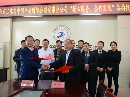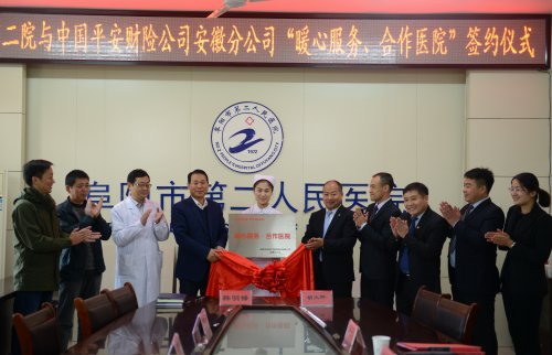15日上午,阜阳市二院与中国平安财险安徽分公司签署“爱心服务合作医院”协议并揭牌。今后中国平安财险安徽分公司车险客户遇到车祸伤者,可以直接到我市三甲医院、阜阳市第二人民医院进入绿色通道,得到及时便捷高效的急救,且费用全免。