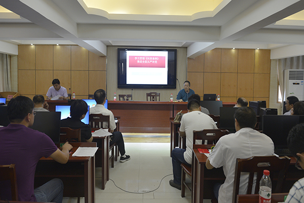 韩朝仁老师采取图文并茂幻灯课件的形式,深入浅出地解读了《中国共产党问责条例》的出台背景、制定过程以及与《中国共产党廉洁自律准则》、《中国共产党纪律处分条例》的联系等,详细地阐述了《中国共产党问责条例》的主要内容和突出的亮点。最后,韩朝仁老师对全体党员干部提出,要以坚定的政治自觉贯彻落实好《中国共产党问责条例》,一是要严肃政治纪律规矩;二是要把自己摆进去;三是要主动担当;四是要结合“两学一做”严肃查找整改问题。