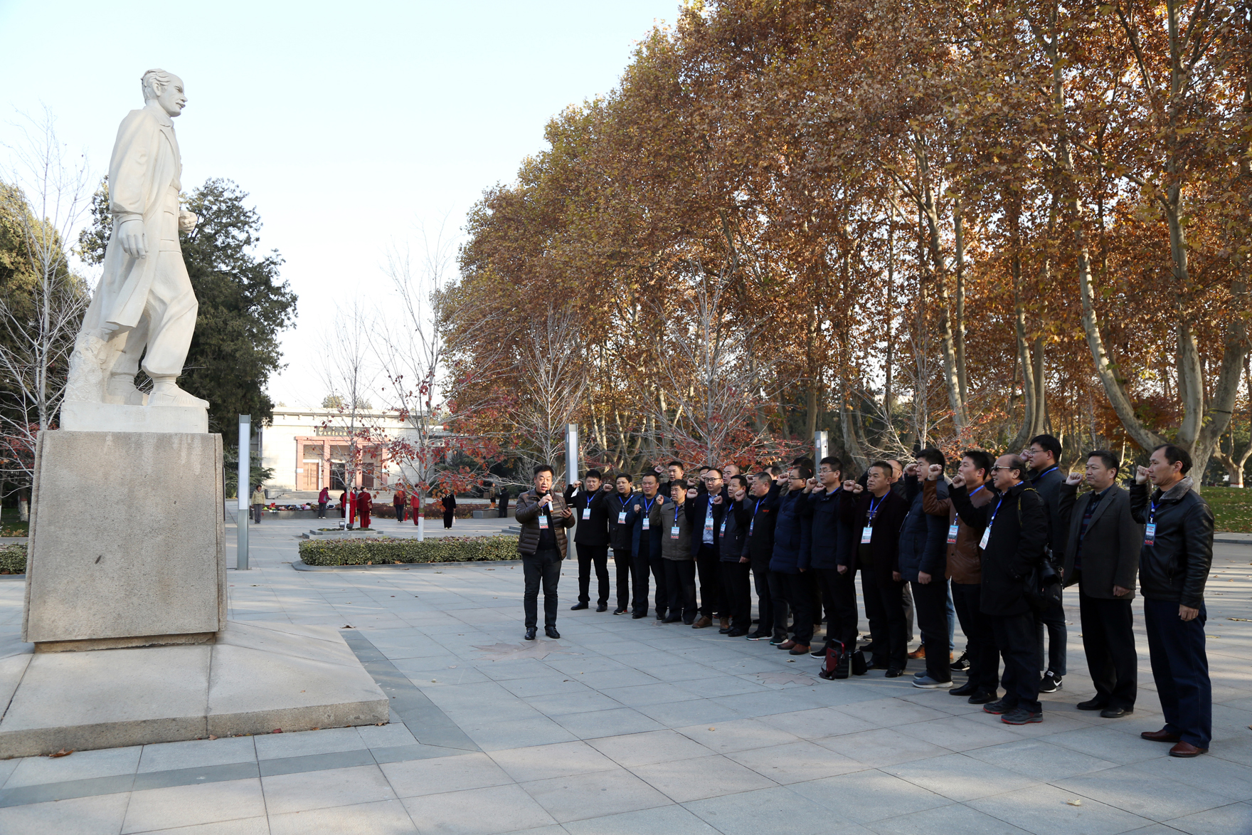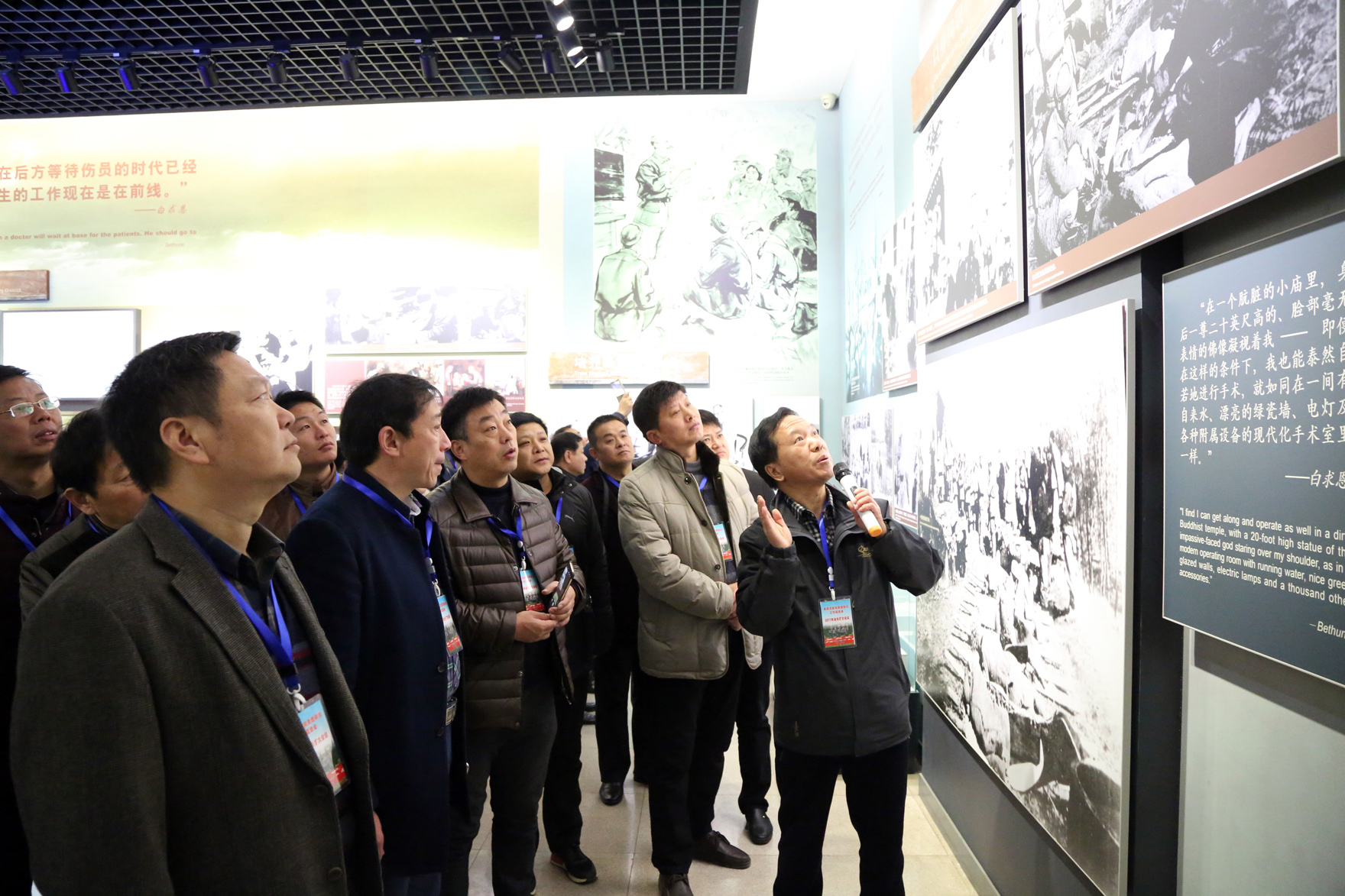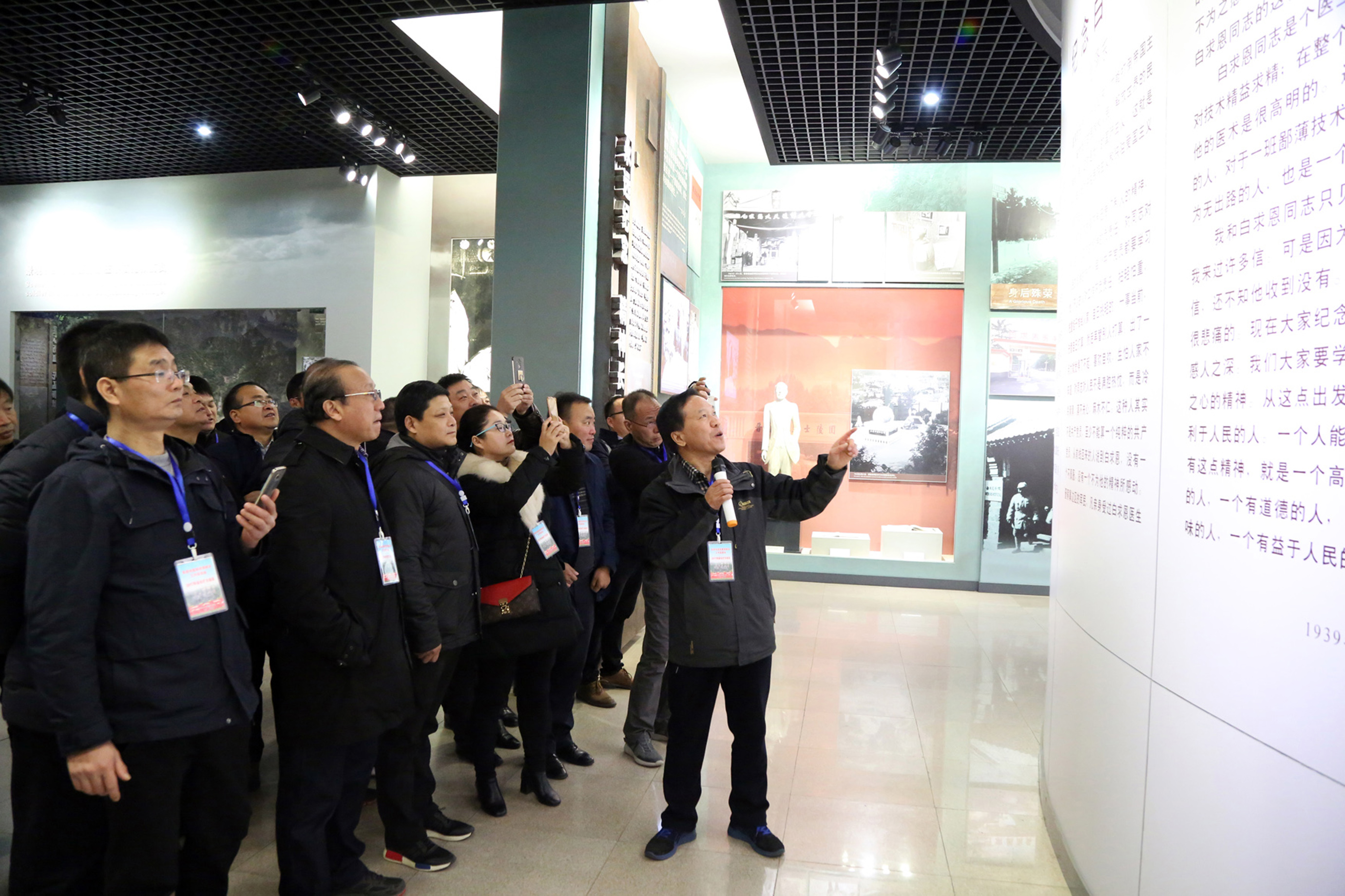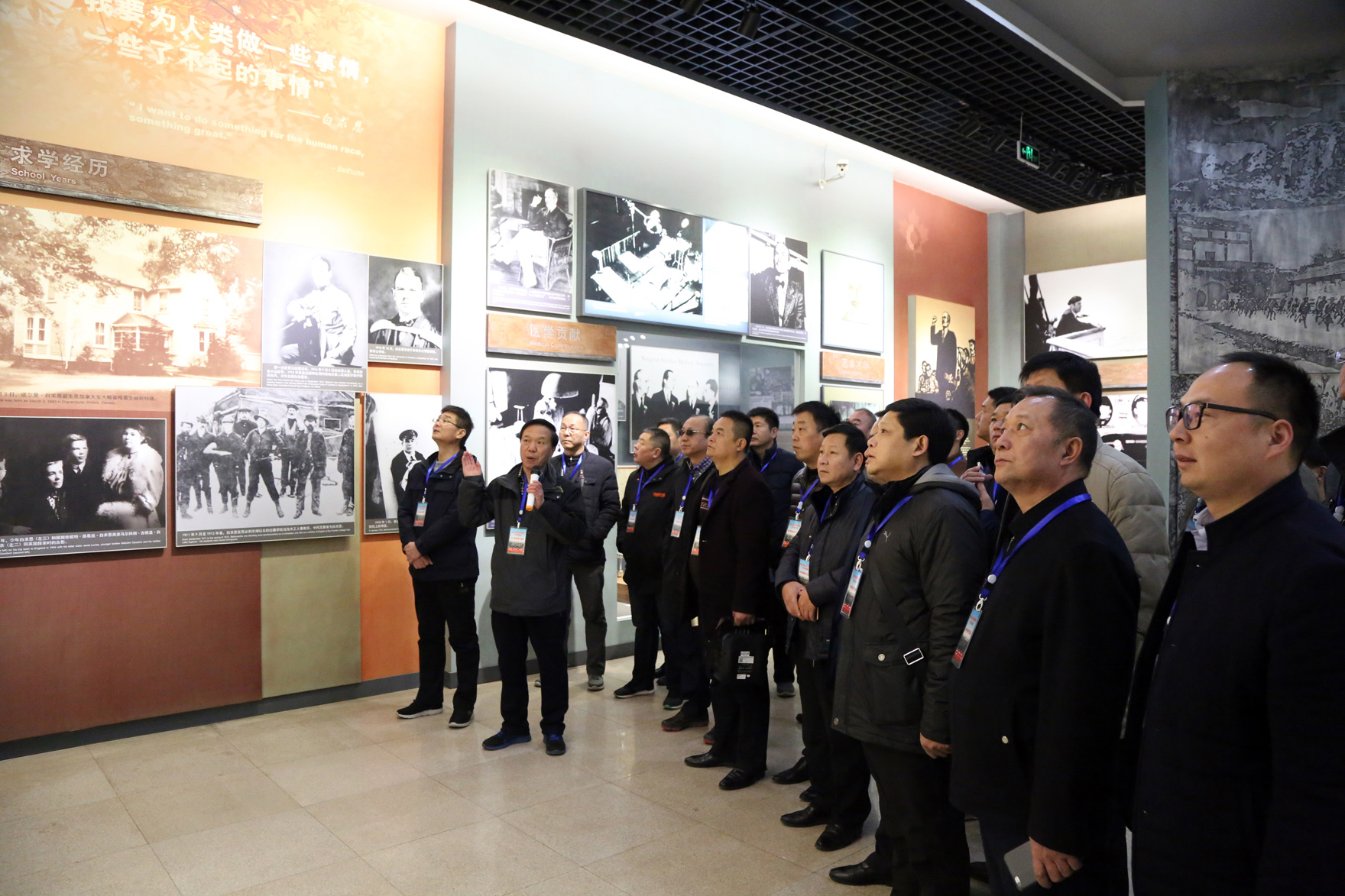 为缅怀革命先烈,弘扬优良传统,开展传承白求恩精神,争创“白求恩式先进单位和白求恩式服务标兵”活动,11月25日,阜阳市医院思想政治工作促进会组织常务理事会各成员计30余人,来到石家庄华北烈士陵园的白求恩和柯棣华纪念馆进行参观学习,接受红色教育。 上午9时,大家怀着无比崇敬的心情参观了白求恩和柯棣华纪念馆。白求恩同志在艰苦的战争环境里,同我抗日军民同甘苦、共患难,他以崇高的国际主义精神和真正共产主义者的态度,把自己的一切奉献给了他孜孜追求的共产主义事业。柯棣华是一个伟大的国际主义战士,为了中华民族的解放,鞠躬尽瘁,忘我工作,为中国人民的解放事业献出了宝贵的生命,做出了卓越的贡献。 在参观活动中,大家一边认真的聆听着河北省人民医院原党委副书记、纪委书记、正高级政工师隋芳教授讲述白求恩、柯棣华的事迹,了解两位国际友人与我们党和中国人民并肩作战、救死扶伤的光辉经历,一边仔细地观看馆藏的大量珍贵历史照片和文献资料,并不时停下脚步,拿出手机或相机进行记录和拍照。当大家看到白求恩在西柏坡艰苦生活、刻苦研钻的照片,特别是听隋书记讲到毛主席在唯一一次接见白求恩时,白求恩打开皮箱,从一层层包裹里面掏出党员证递给主席看时,以及阅读白求恩牺牲前写下的最后一封信文时,无不为之感动地热泪盈眶。 在纪念馆,大家重新学习了毛主席发表的《纪念白求恩》和为柯棣华同志殉职的题词,并向白求恩塑像敬献鲜花。继而大家来到华北烈士陵园,瞻仰了白求恩墓,并在白求恩塑像前,由阜阳市医院思想政治工作促进会秘书长马怀业领誓,庄严宣誓《希波克拉底医学誓言》。 通过这次参观学习,大家深刻感受了两位共产主义战士伟大的国际主义精神,领略了他们对人生真正价值的追求,也深深地体会到了他们与中国人民之间的深厚感情,更加坚定了学习弘扬白求恩精神的信念。大家纷纷表示对白求恩的对工作极端负责、对人民极端热忱、对技术精益求精的精神有了更加深刻的认识,决心充分发挥医院思想政治工作优势,进一步激发全市广大医务工作者立足岗位、无私奉献、恪守医德、服务患者的热情,以更加精湛的技术、更加优质的服务,真正肩负起“敬佑生命、救死扶伤、甘于奉献、大爱无疆”的神圣职责,为提高我市广大群众的健康水平,实现“健康阜阳”、“健康中国”宏伟目标做出新的更大的贡献。(马怀业/文 刘国美/摄)