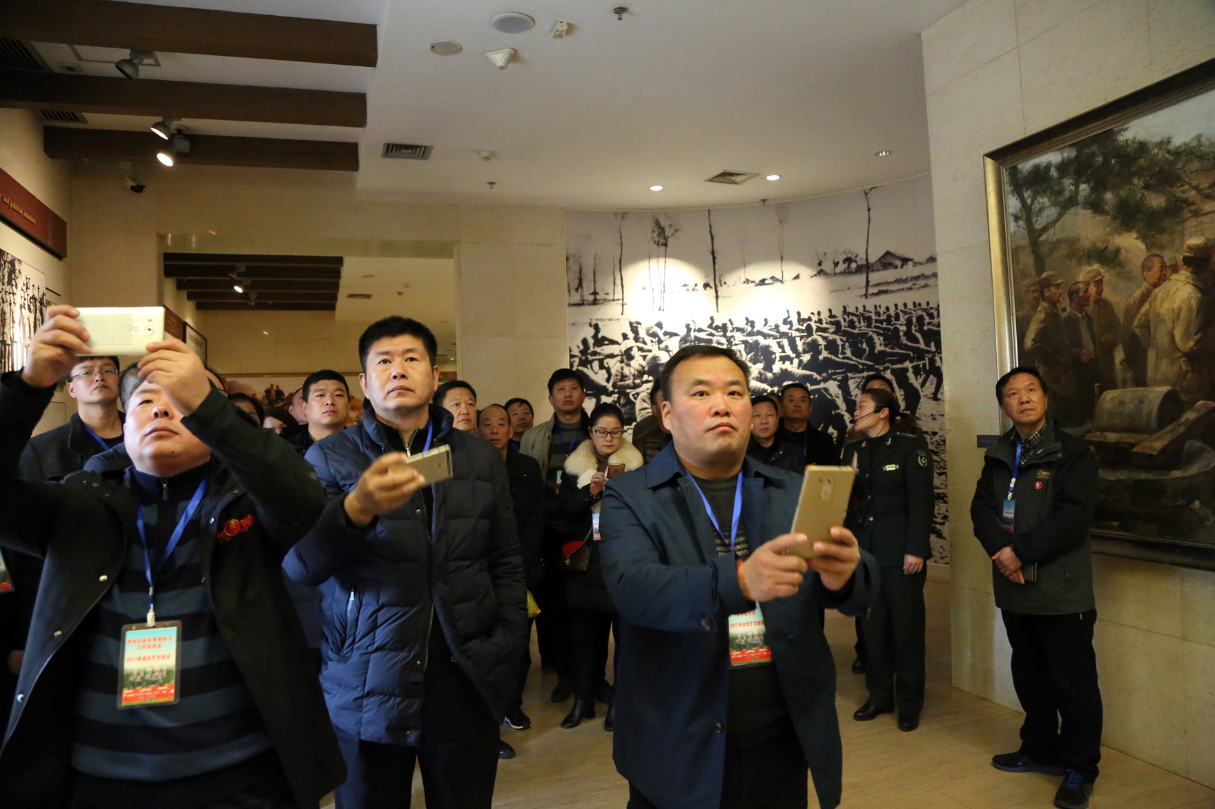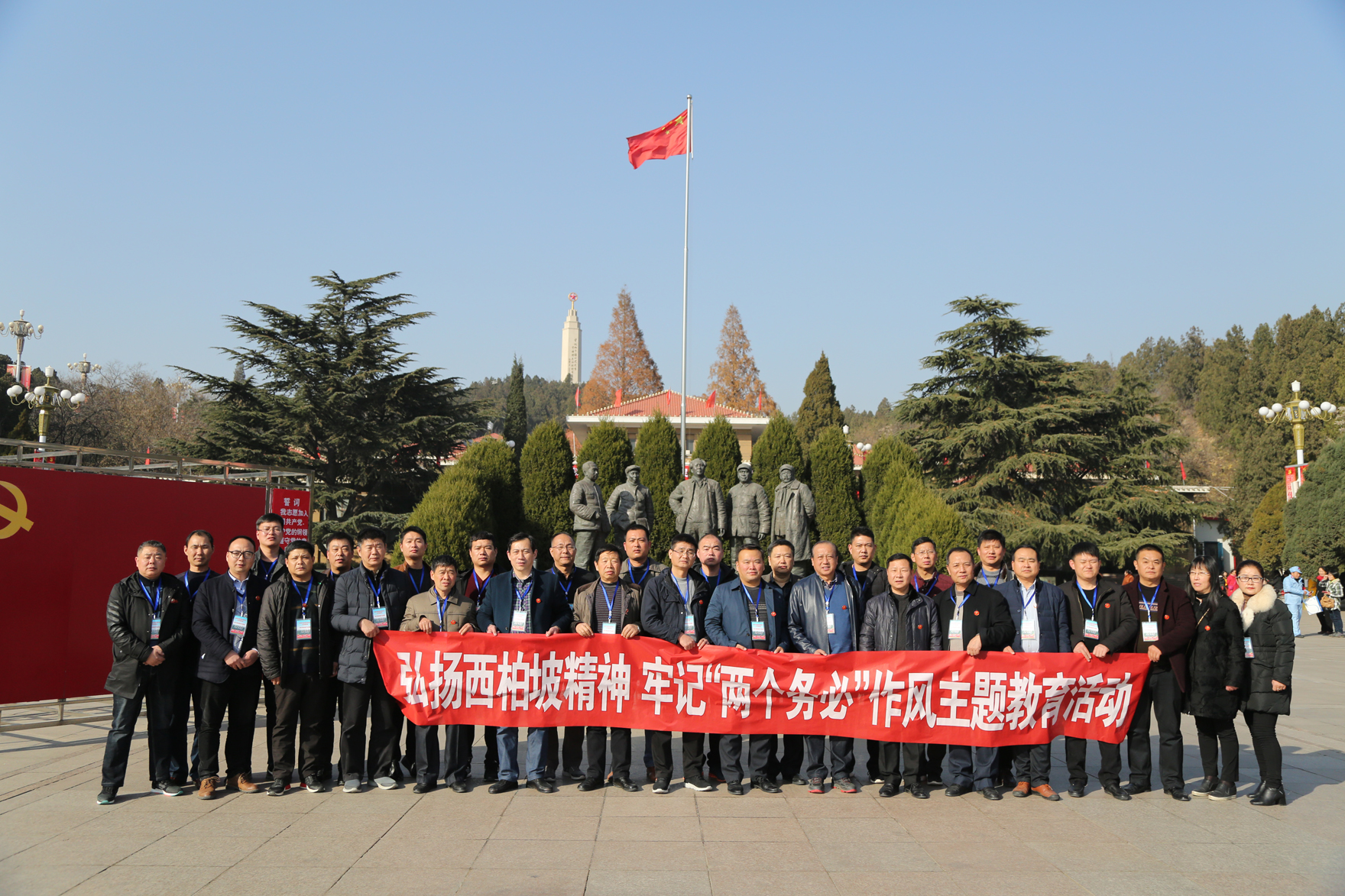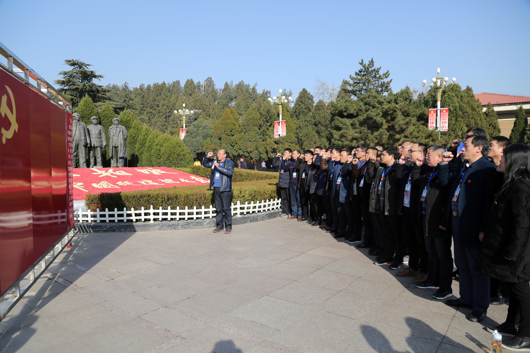 为深入学习贯彻十九大精神,加强“不忘初心,牢记使命”理想信念,缅怀革命先烈,回顾党的光辉历史,接受党性和革命传统再教育, 11月25日下午,阜阳市医院思想政治工作促进会组织常务理事会各成员计30余人到西柏坡开展以“弘扬西柏坡精神、牢记‘两个务必’”为主题的教育实践活动。 大家首先来到五大书记塑像前,面对党旗,由会长、市第二人民医院党委书记、胸外科主任医师、安徽医科大学硕士导师陶立伟领誓,重温入党誓词,并先后参观了西柏坡廉政教育馆、西柏坡纪念馆,中共中央旧址,包括毛泽东、朱德、周恩来、刘少奇等老一辈党的领袖故居,中央军委作战室旧址,七届二中全会会址等改变中国命运的历史场所。 在西柏坡纪念馆和廉政教育馆的展室里,大家一边认真聆听解说员的讲述,一边认真观看馆内的陈设,通过一个个生动鲜活的历史故事,看着一件件珍贵的文物、一张张宝贵的手稿、照片,进一步了解了全国土地会议、三大战役以及中国共产党七届二中全会的背景和意义,重温毛泽东同志当年提出的“两个务必”、“进京赶考”的重大警示及其时代意义,深刻领会习总书记强调的“赶考远未结束”、“西柏坡是立规矩的地方”等谆谆告诫。近距离地触摸历史、感悟历史,革命圣地所承载的丰厚历史内涵,使每个人心灵受到深深的震撼。