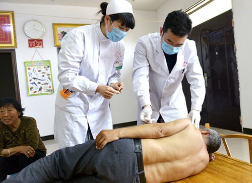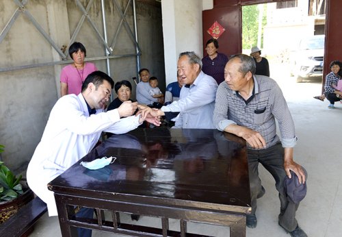 “中医院先生真好,看病到家,服务到户!”郭庙镇随东村67岁肖老太感动地说。4月27日下午,太和县中医院党委书记梁成名一行常态性到郭庙镇随东村开展脱贫攻坚工作,在行政村书记家,为该村贫困户和社员群众开展义诊活动,得到了广大群众的高度赞誉。 当天义诊人群中,随东村的贫困户鲍老汉给大家留下深刻印象。他今年75岁,因常年劳作受累,患肩周炎一年多,导致左手臂疼痛难忍,不能动弹,虽然长期张贴很多活血止痛膏,但是见效不大,严重影响了日常生活,更不用说田间劳动,梁成名认真诊断明确后,为其实施了中医传统疗法小针刀术,病情即刻得到了明显改善和缓解。鲍老汉从党的好政策对农民群众生活和健康等方面的综合提升,以及党员干部对贫困户的真诚帮扶,感慨地说道:“爹亲娘亲不如共产党习总书记亲,哥好妹好不如党员干部好!” 据悉,太和县中医院为发挥医院优势,针对帮扶贫困户实施了健康扶贫政策,该院医务人员定期走村入户为贫困户开展健康咨询、讲座及送医送药等义诊活动,得到农民群众的一致好评。