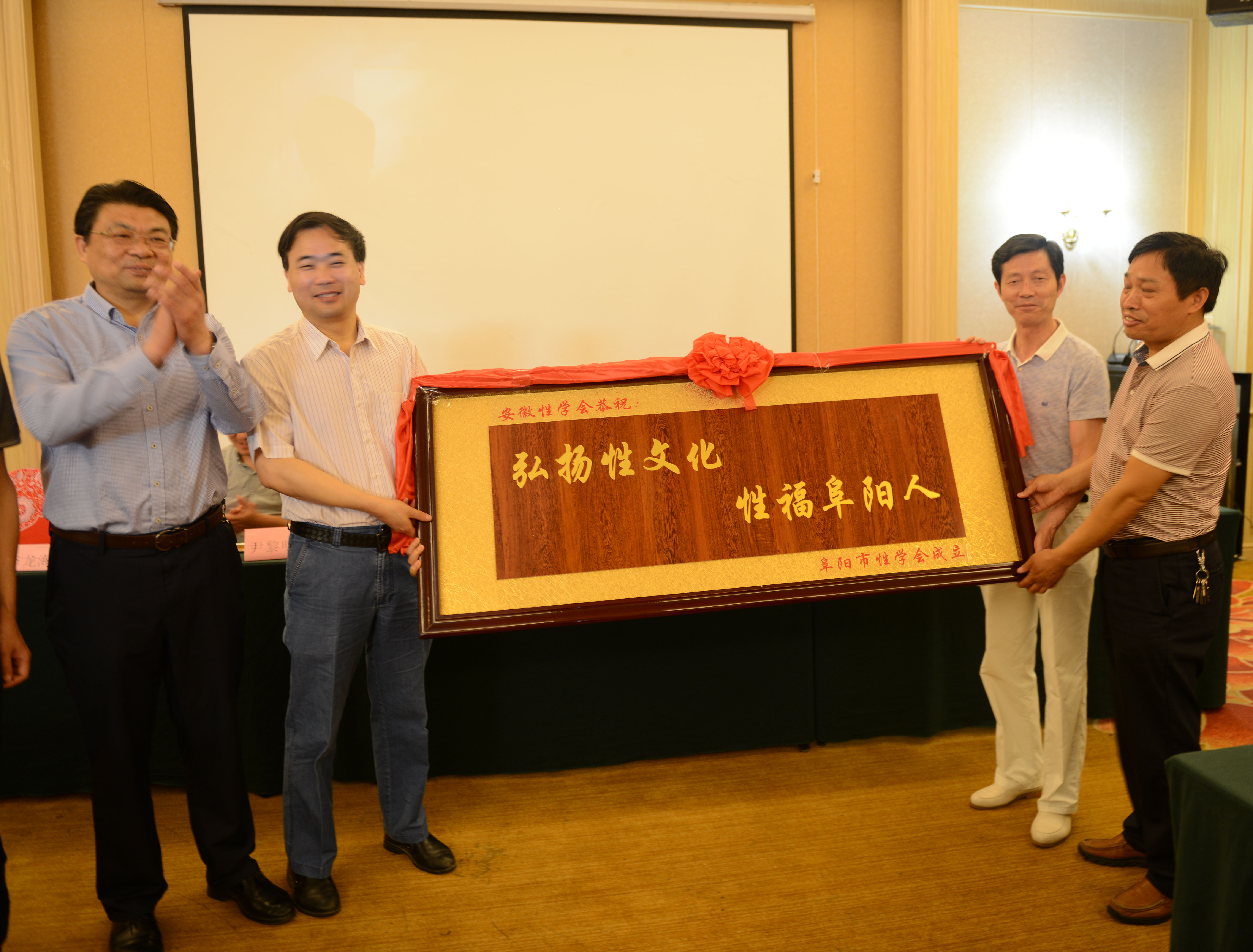 新当选会长李龙海、候任会长杜永强分别作了表态发言,盛琴、陶立伟、冀荣俊分别对阜阳市性学会的成立表示热烈的祝贺,并发表热情洋溢的讲话。冀荣俊还代表安徽省性学会向新成立的阜阳市性学会赠送了“弘扬性文化,性福阜阳人”匾牌。