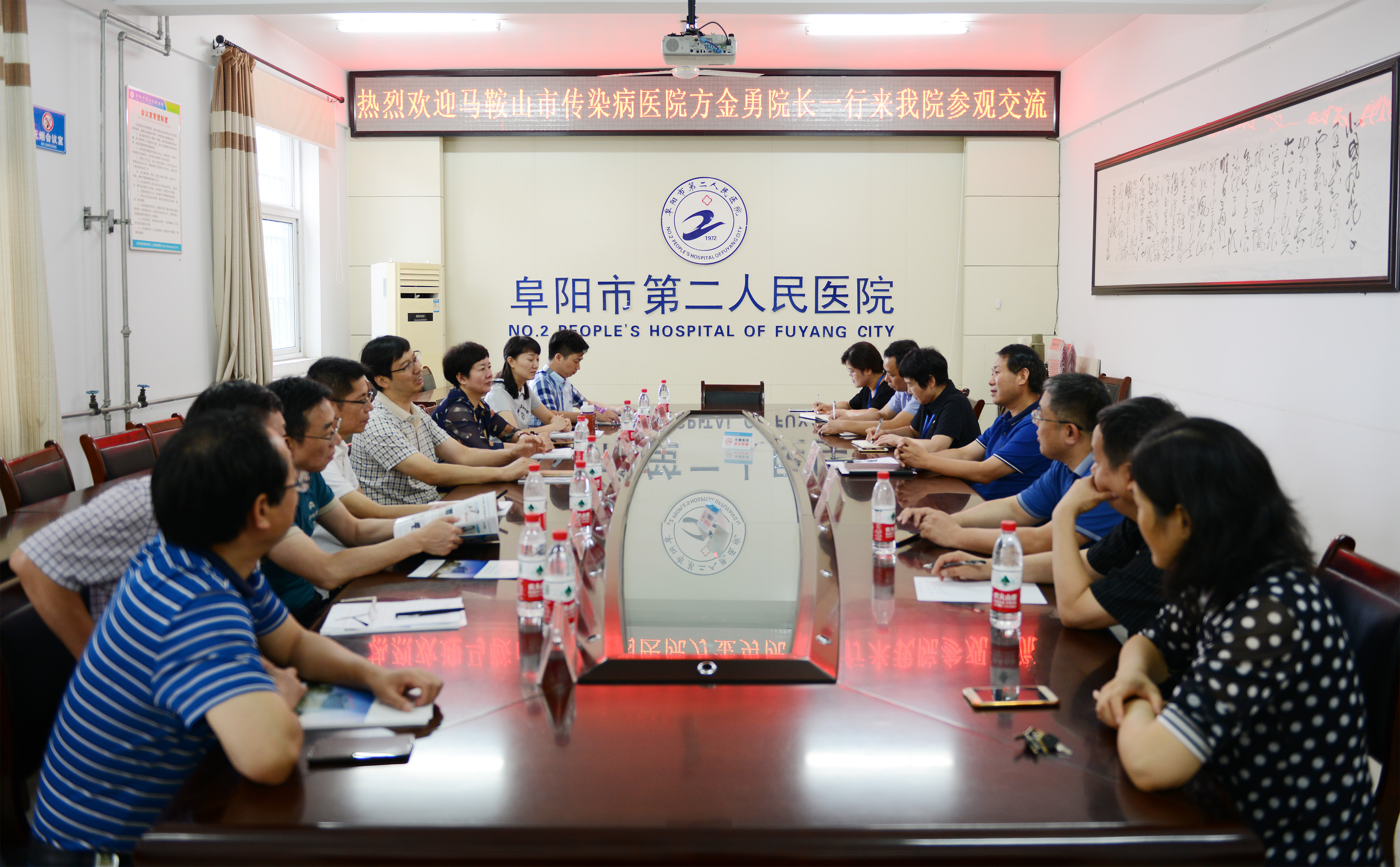 7月2日上午,马鞍山市传染病医院院长方金勇率领该院副院长王雪倩、陶德刚,院长助理姚献虎,结核科主任甘能金,肝病科主任李宏,办公室主任朱春燕,医教科科长洪许伟一行8人考察团,到到阜阳市第二人民医院考察交流感染病学科建设、业务发展和医疗质量与安全管理理等情况。