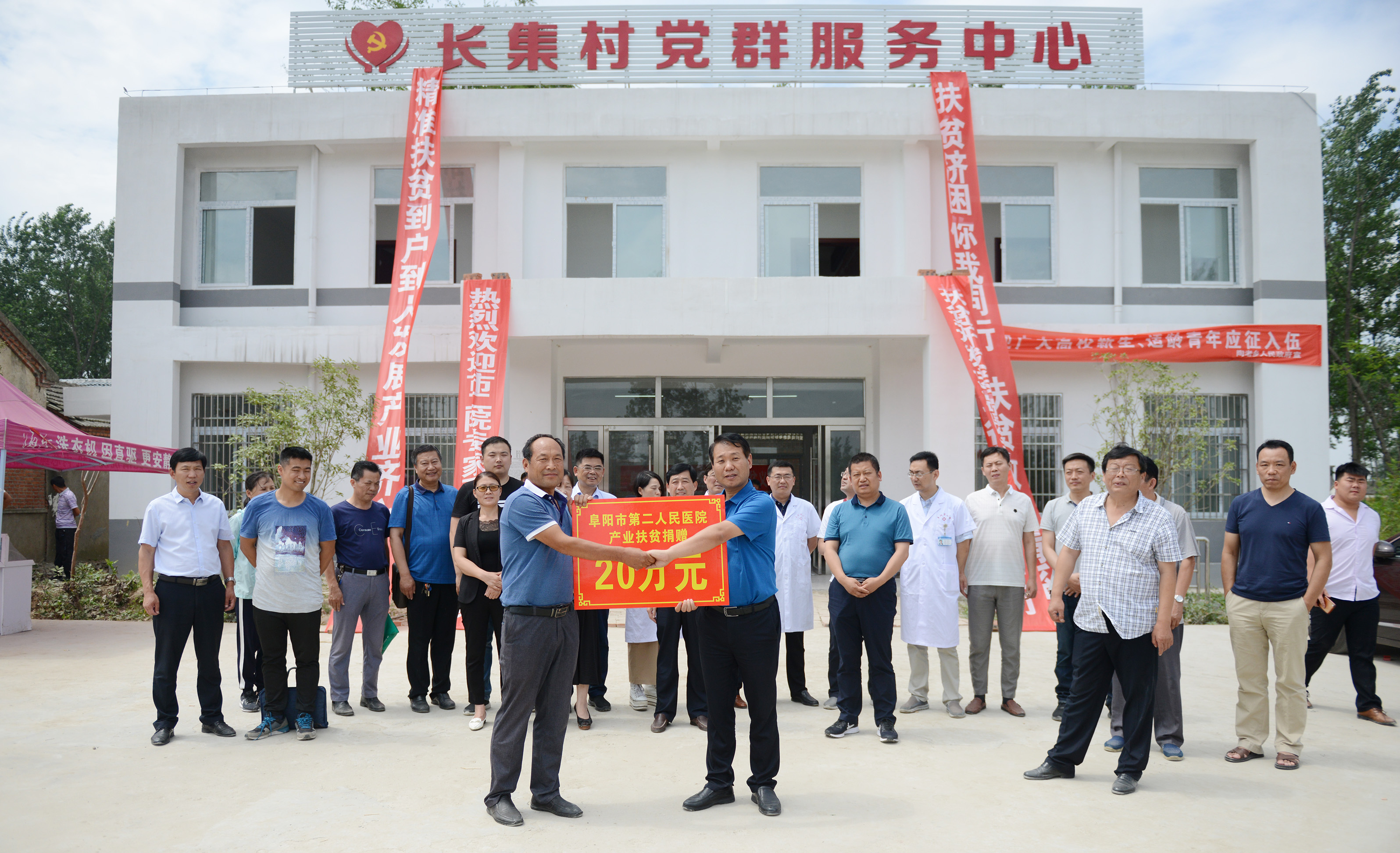 6月16日,阜阳市第二人民医院捐赠20万元作为产业扶贫资金,助力对口帮扶村临泉陶老乡长集行政村发展村集体经济,实现今年底全村脱贫出列的目标。