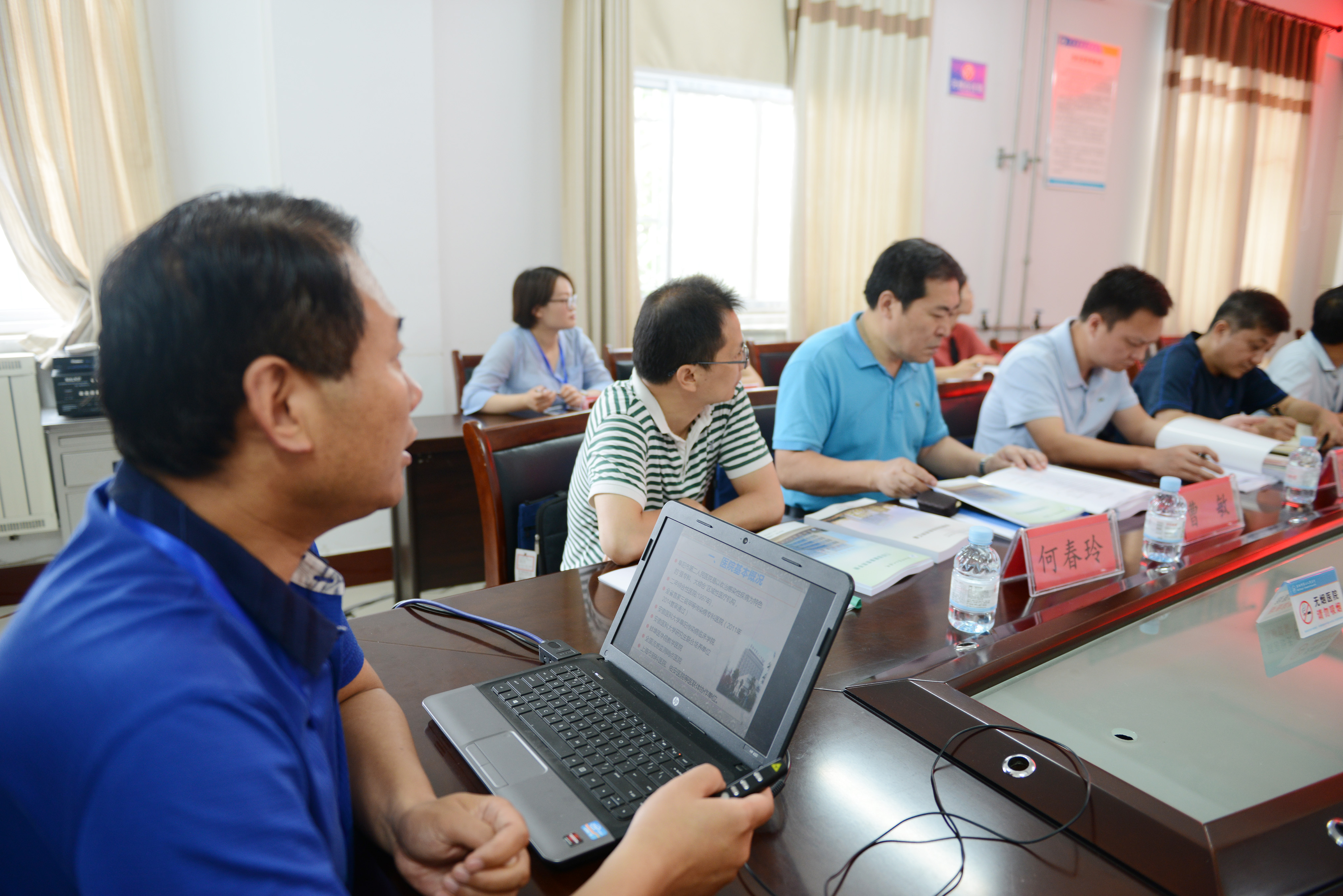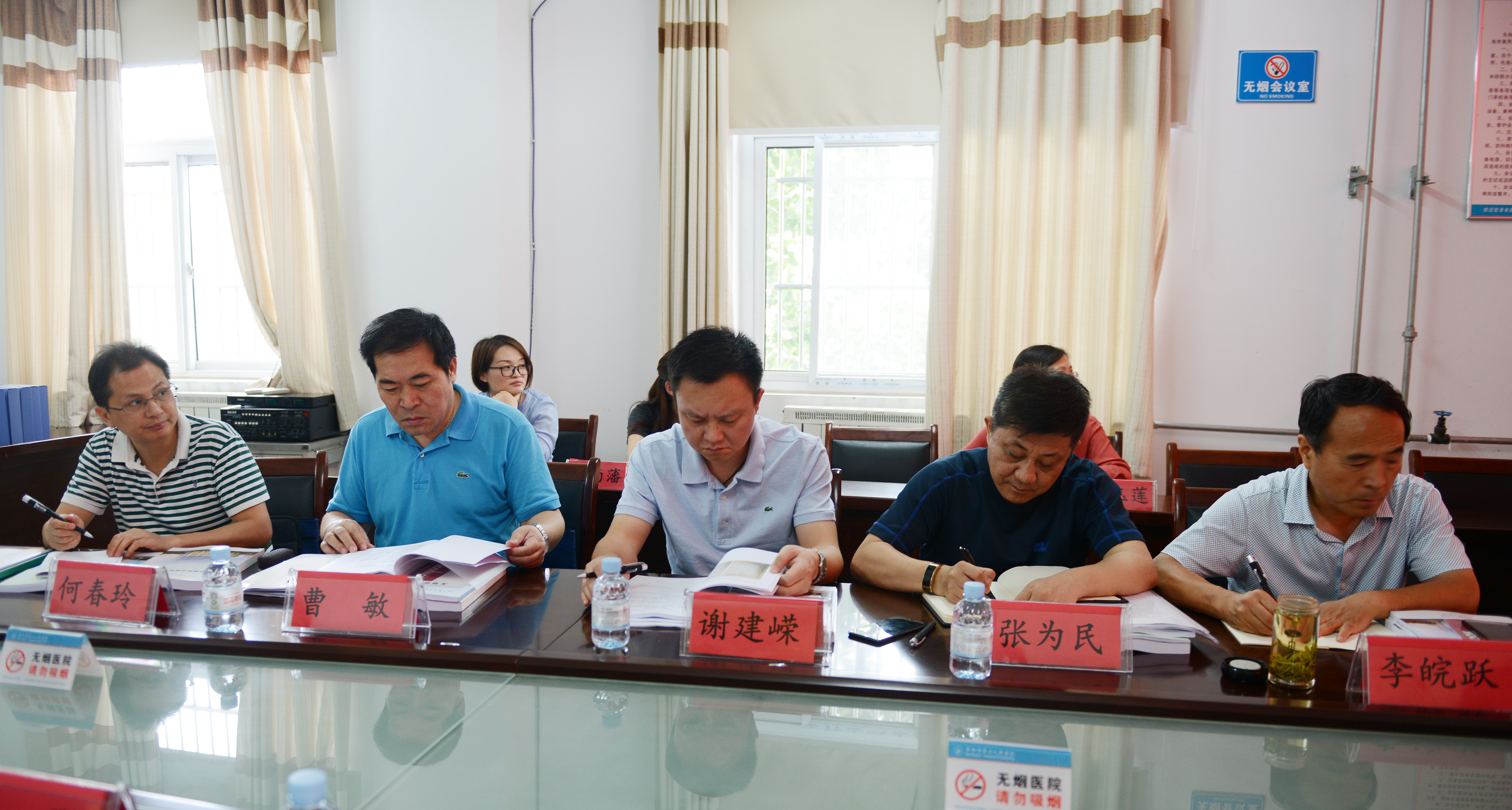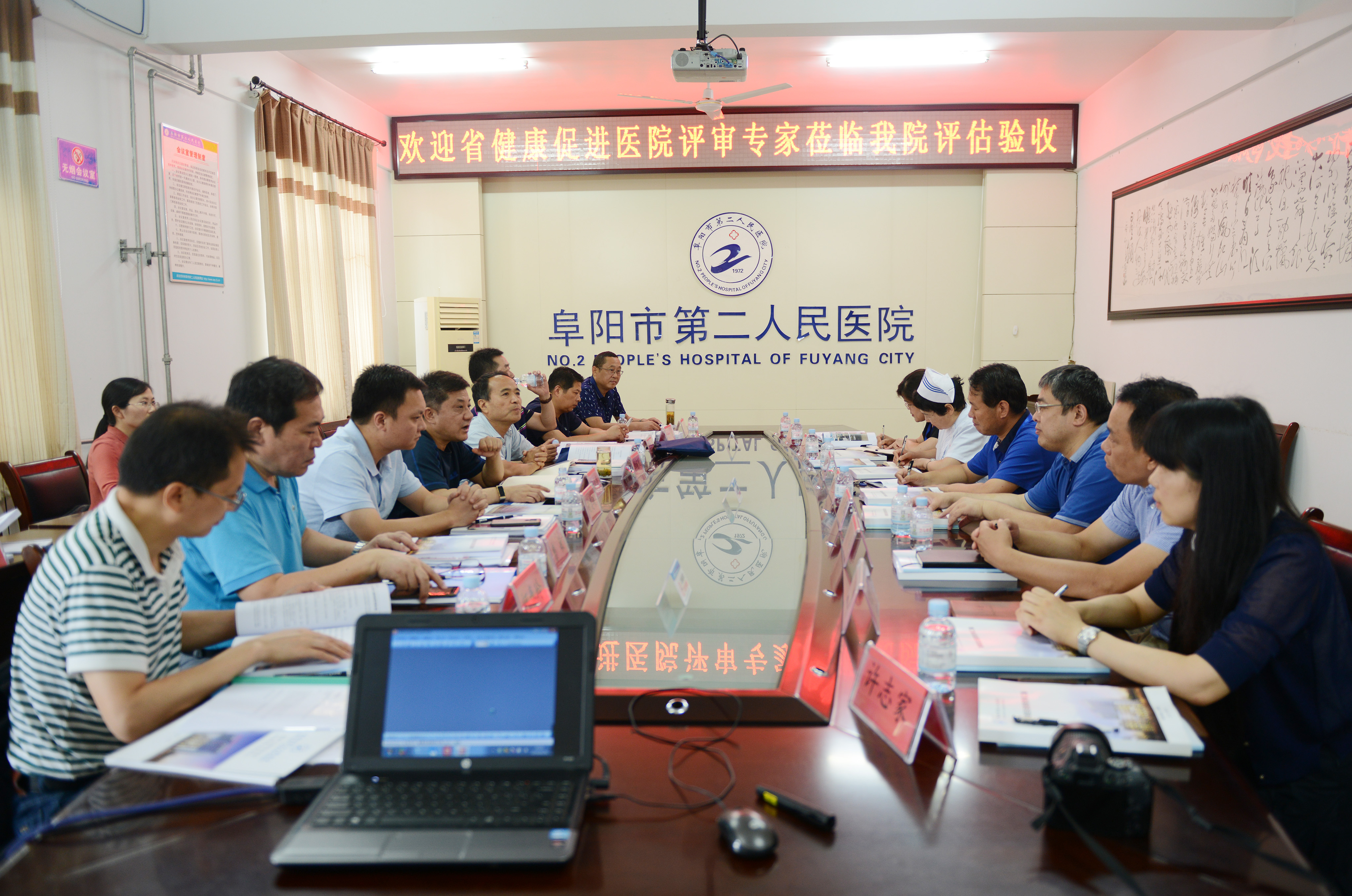 6月23日上午,省卫生计生委信息中心主任张为民,率谢建嵘、曹敏、何春玲等专家组一行,以市卫生计生委调研员李皖跃、宣传信息科科长马伯平、健康教育所副所长李立伟陪同下,对阜阳市二院“健康促进医院”创建工作进行了检查评审。